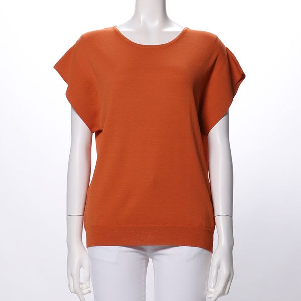 ラウンドネックフレアスリーブニット