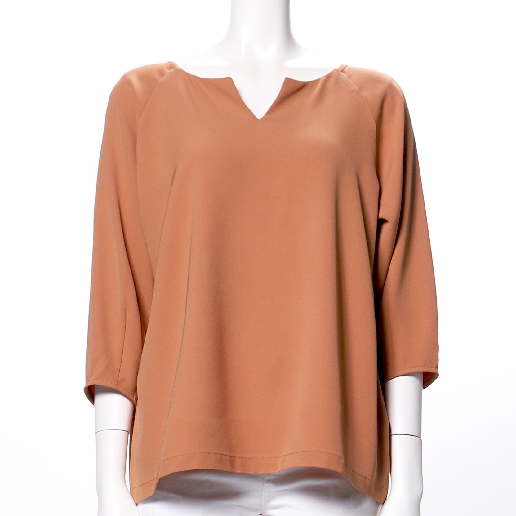 袖のタックがポイントのオープンフロントネックブラウス。タイトスカートとパンプスを合わせてレディライクなスタイルに、デニムパンツとスニーカーを合わせてカジュアルスタイルもいいですね◎