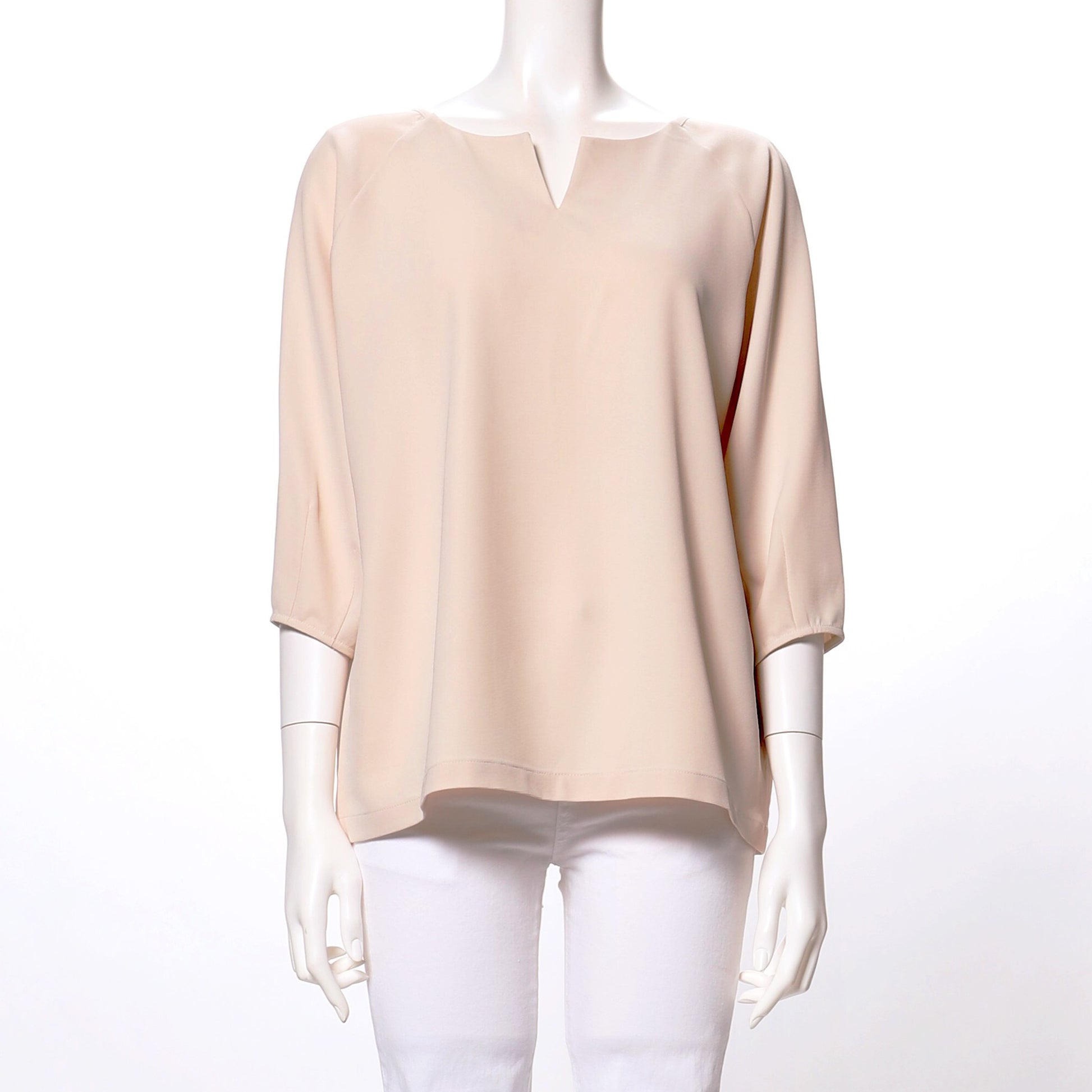 「襟の感じが好きです。シルエットもスッキリしていてきれいでした。一緒に送っていただいたスカートと着ていきました。無地×無地はちょっと地味めかなという気がしました。」