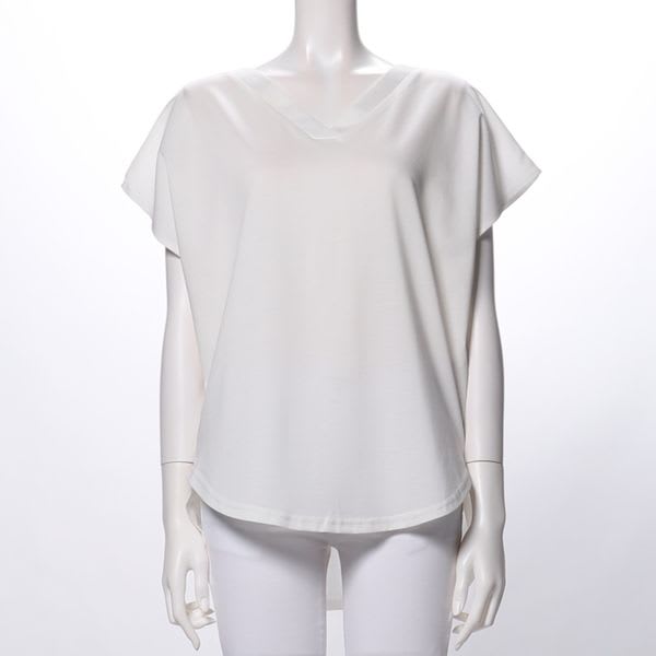 前後のVライン開きがすっきりと見せてくれるカットソーは、ワイドパンツを合わせてラフ感のある着こなしや、フレアスカートを合わせてレディライクな着こなしも◎ですね。
