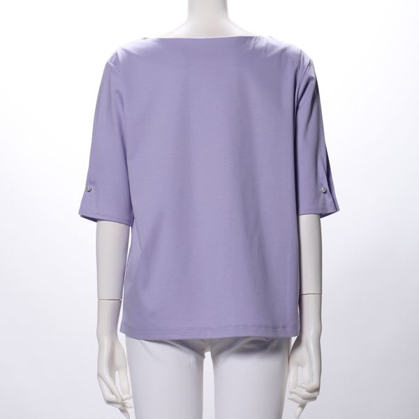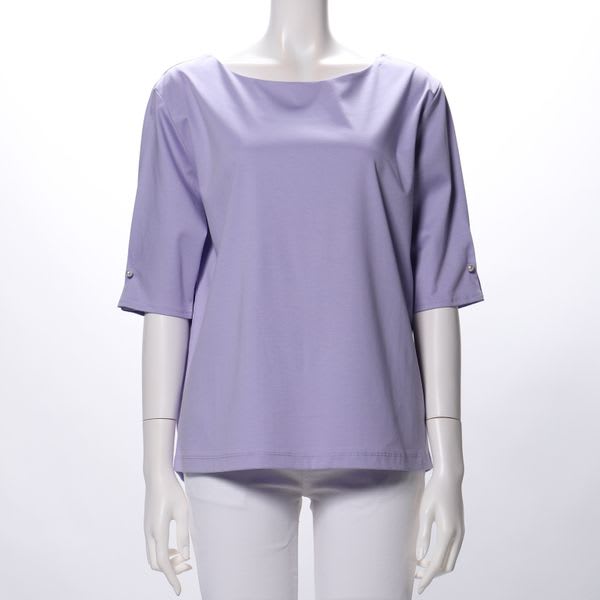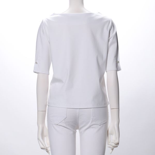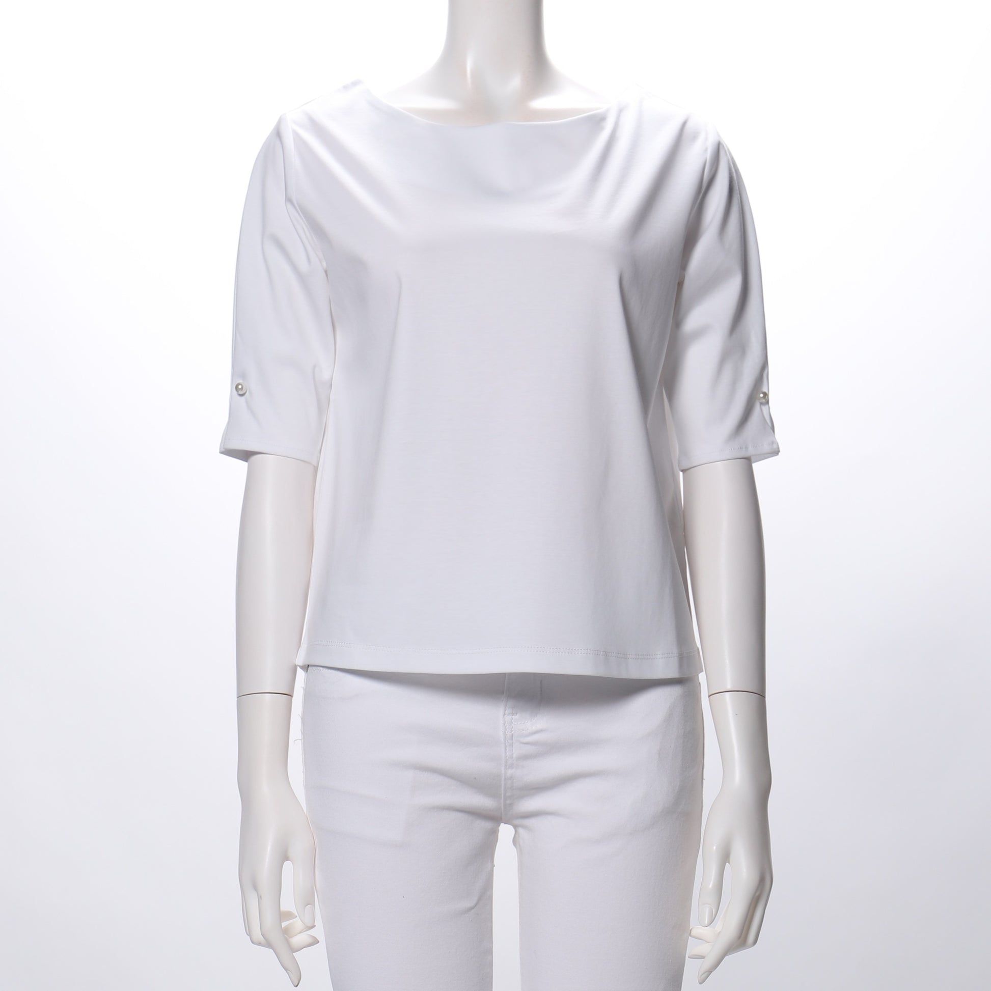 袖口のパールピンがポイントになったボートネックカットソー。テーパードパンツを合わせてスッキリとした着こなしに、フレアスカートに合わせて女性らしいスタイルもおすすめですよ◎