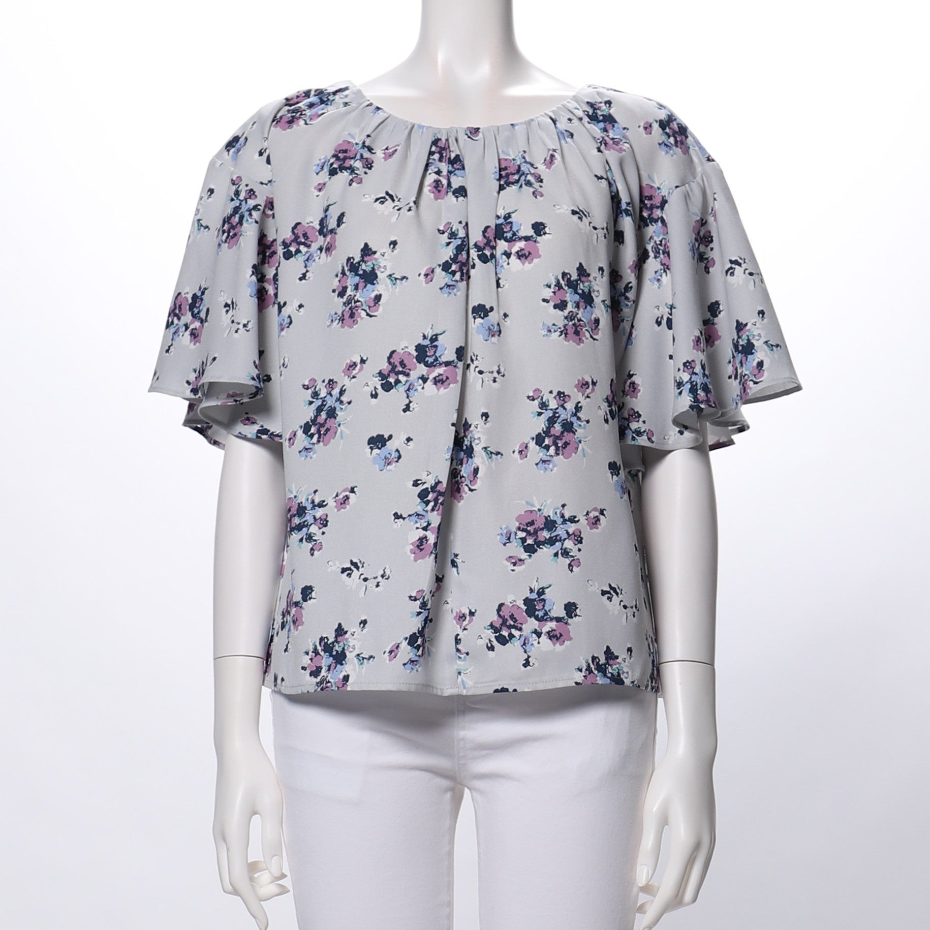 フレアスリーブの花柄ブラウスです。
