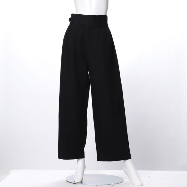 ウエストベルトデザインのワイドパンツ。ストライプ柄ブラウスとポインテッドトゥパンプスを合わせてクールなスタイルに、ボーダーカットソーとスニーカーを合わせてカジュアルな着こなしも素敵ですよ◎