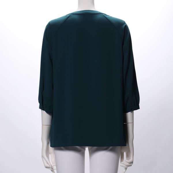 ラグランスリーブオープンフロントネックブラウス