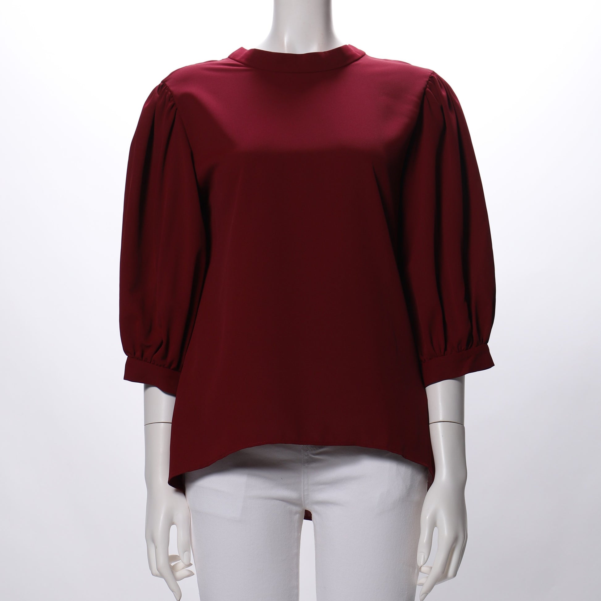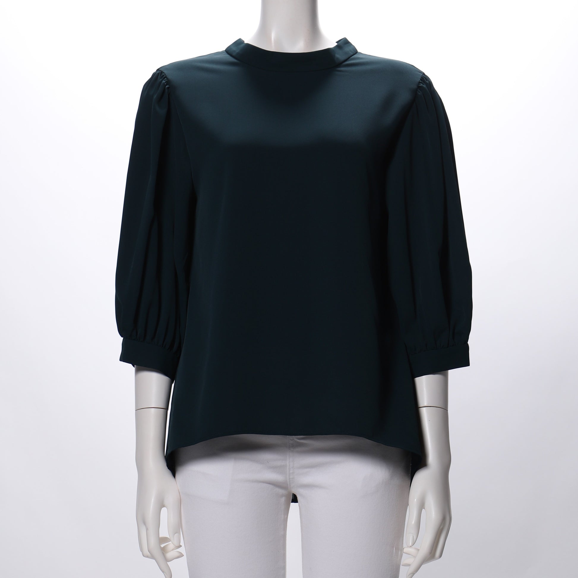 バックリボンがポイントのパフスリーブブラウスです。フレアスカートと合わせてフェミニンスタイルに、ストレートパンツと合わせて甘辛ミックススタイルも素敵ですね。