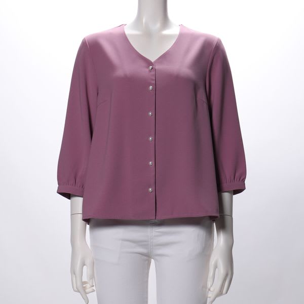 パールボタン前開きブラウス