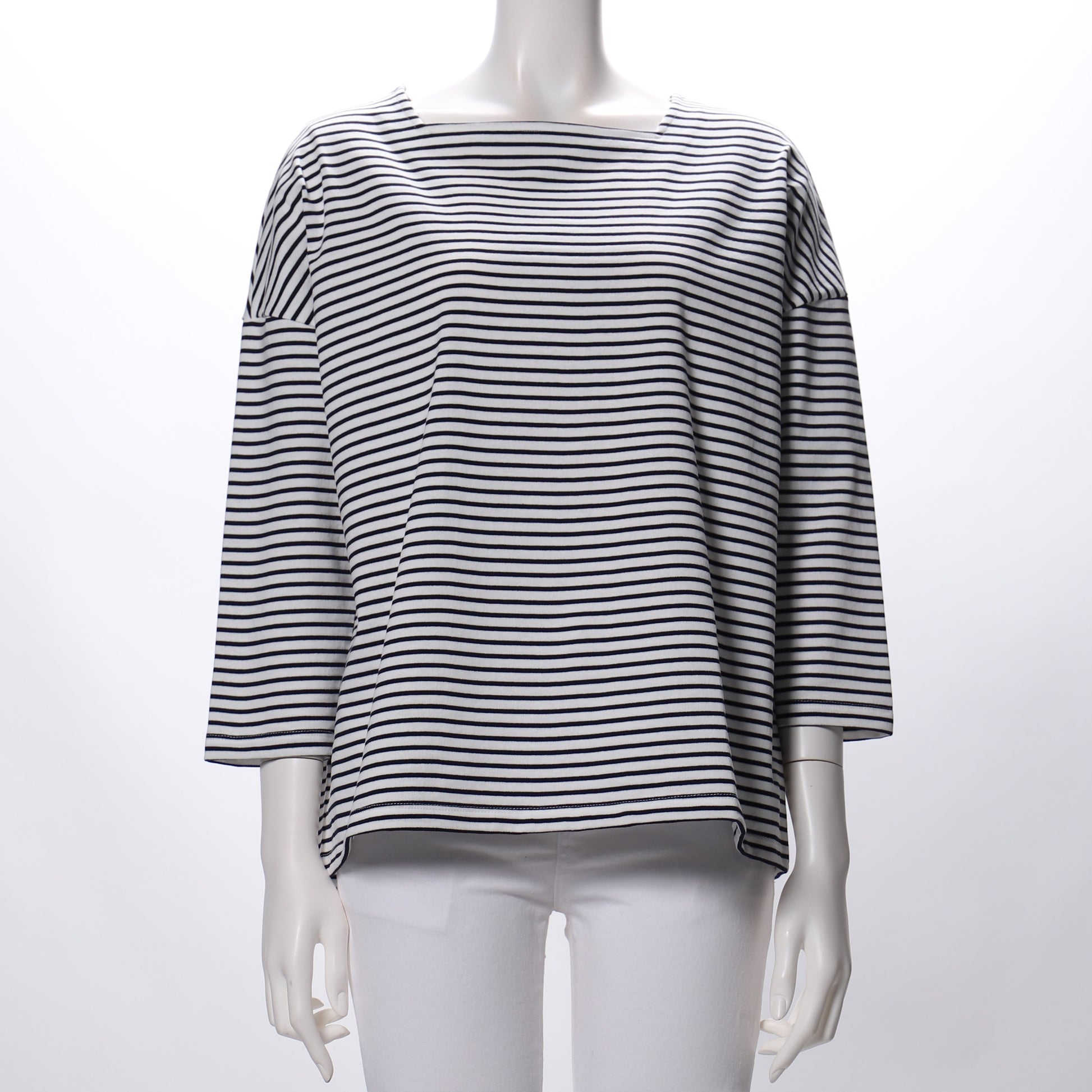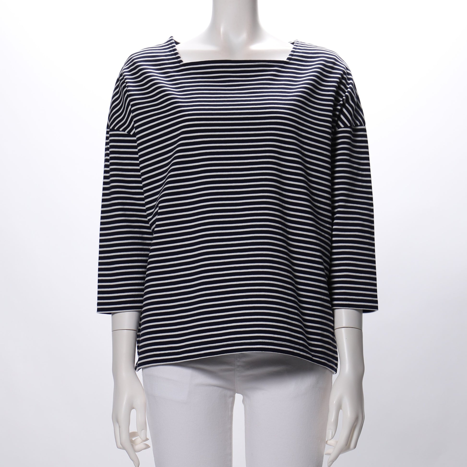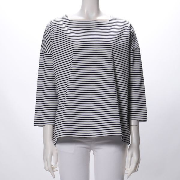 ゆったりとしたシルエットのスクエアネックカットソー。ロング丈のプリーツスカートを合わせてキレイめカジュアルに、テーパードデニムパンツ を合わせてラフな感じもいいですね!