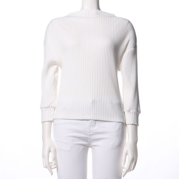 オフネックのリブカットソーです。フレアスカートと合わせてフェミニンスタイルに、デニムパンツでカジュアルなスタイルも良いですね。