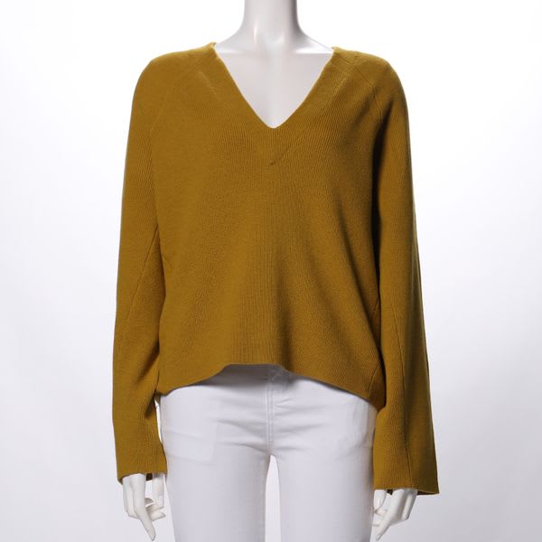 Vネックのミドルゲージニットです。タイトスカートと合わせてレディライクに、デニムパンツと合わせたカジュアルスタイルも素敵ですね。