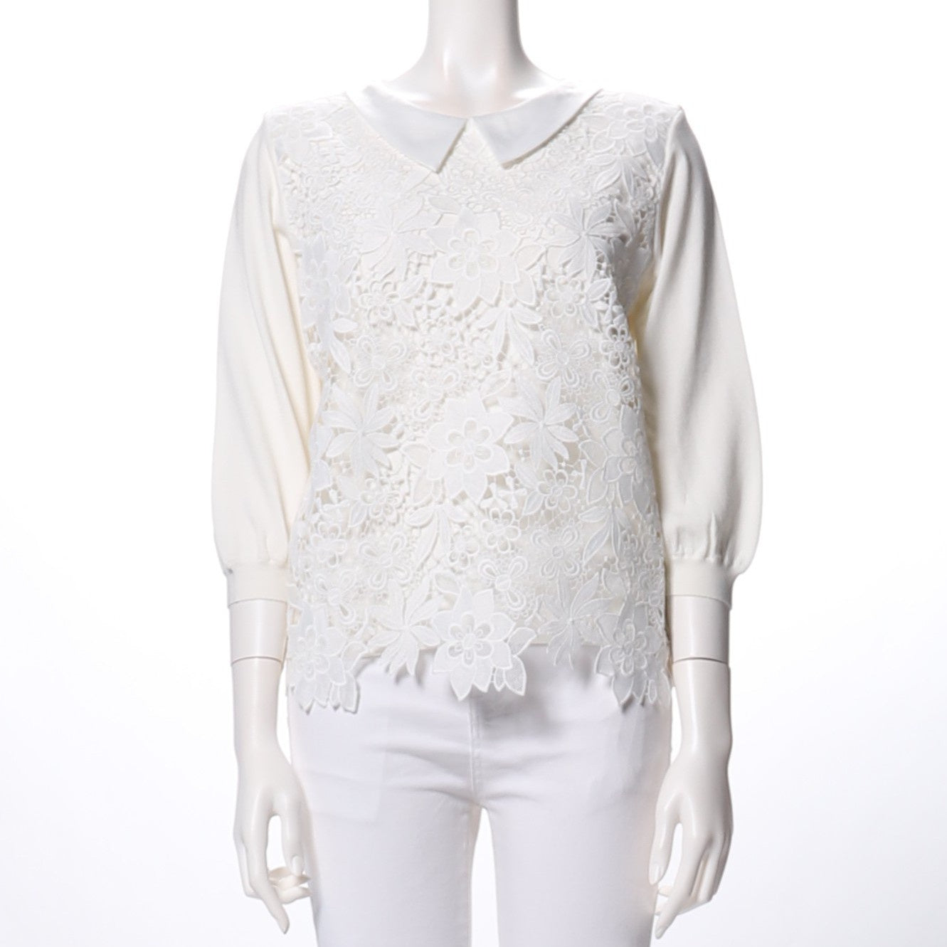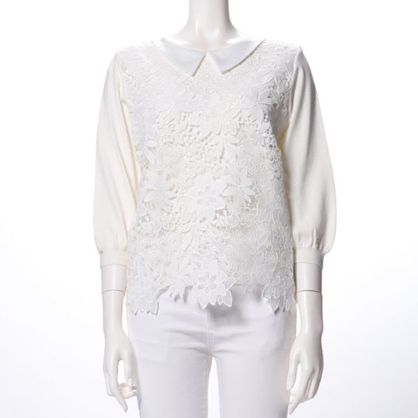 フロントレースが華やかな異素材ミックスカットソーです。タイトスカートを合わせてキチンと感のあるオフィススタイルに、ワイドフレアパンツを合わせた大人可愛いコーデもいいですね!