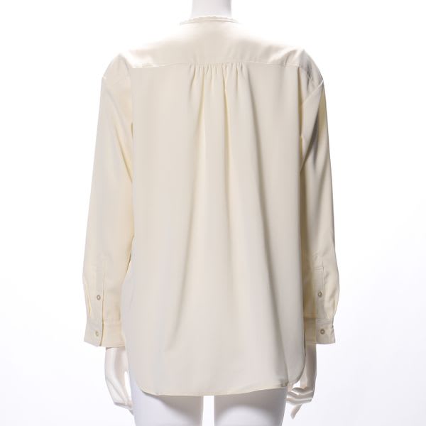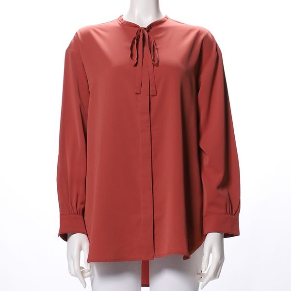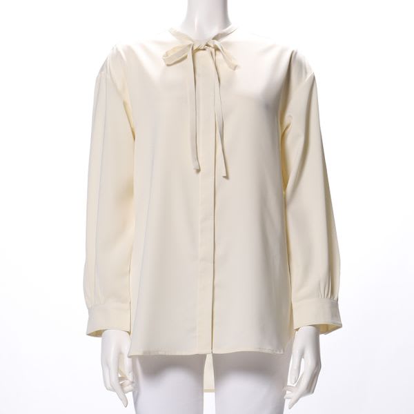 前開きデザインのリボンタイブラウス。タイトスカートを合わせればキチンと感のあるオフィススタイルに、ストレートパンツを合わせたかっちりスタイルも◎。