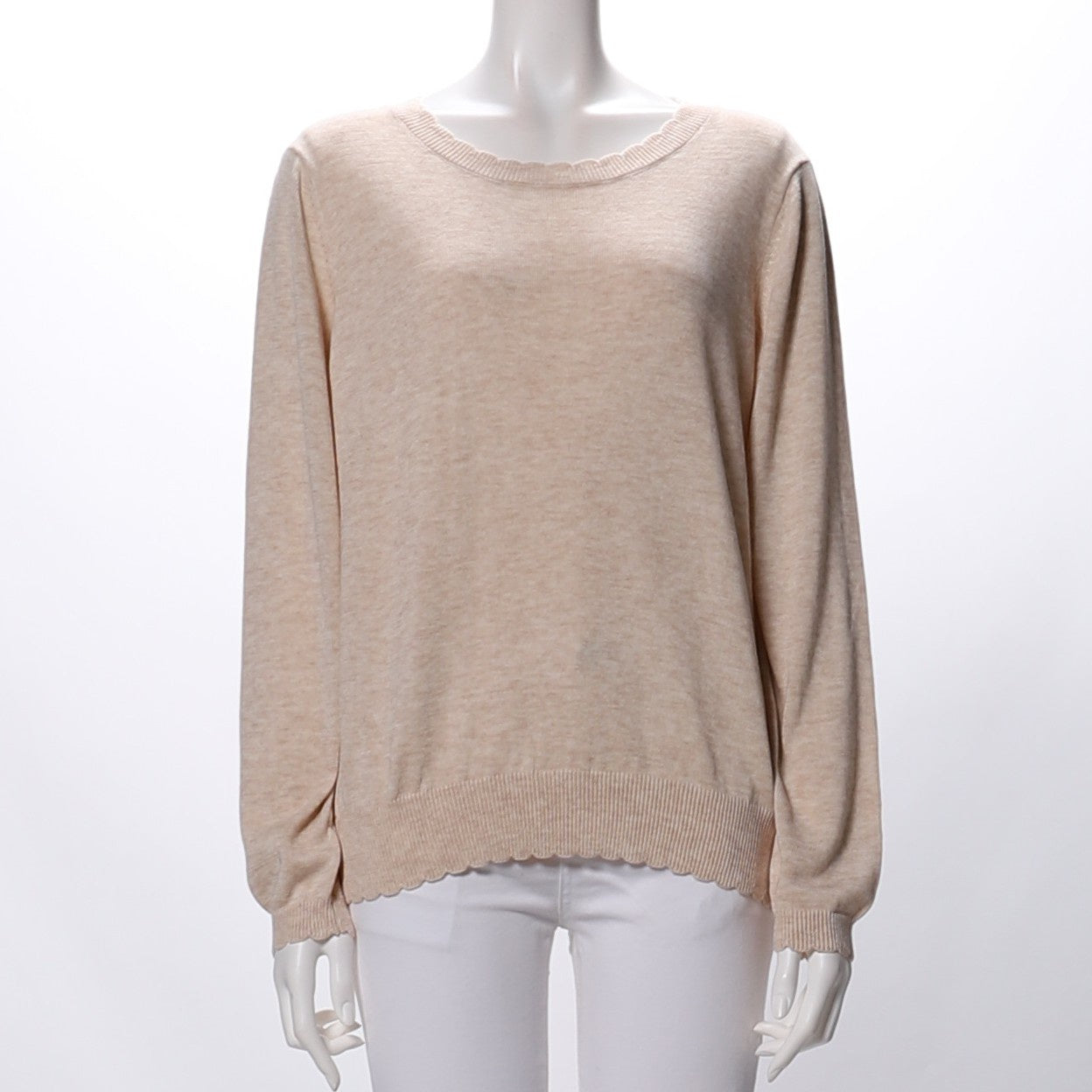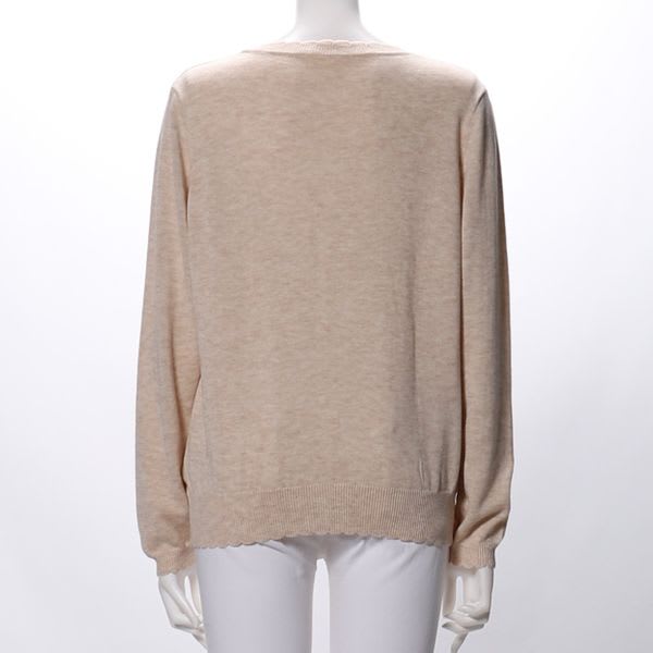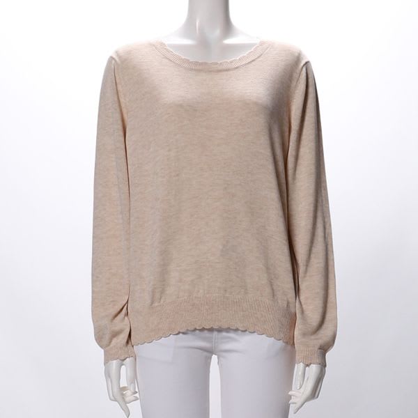 スカラップのリブデザインがポイントのニットです。フレアスカートと合わせたフェミニンスタイルや、テーパードパンツと合わせて甘辛ミックススタイルも良いですね。