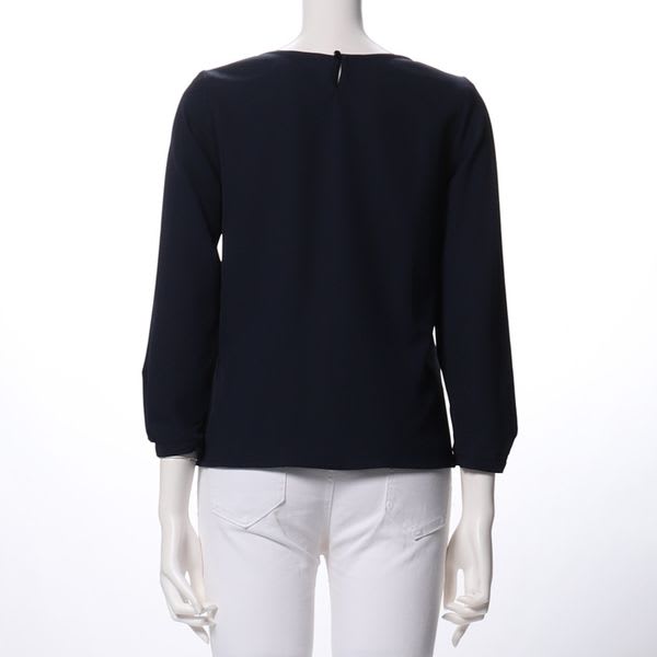 メタルパーツ付きオープンフロントネックブラウス