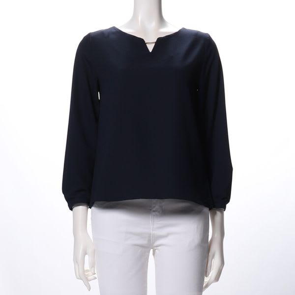 メタルパーツ付きのオープンフロントネックブラウス。レースのスカートに合わせてレディライクなスタイルに、テーパードパンツに合わせて綺麗めなスタイルも素敵ですよ◎