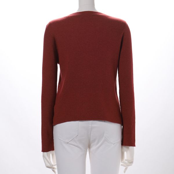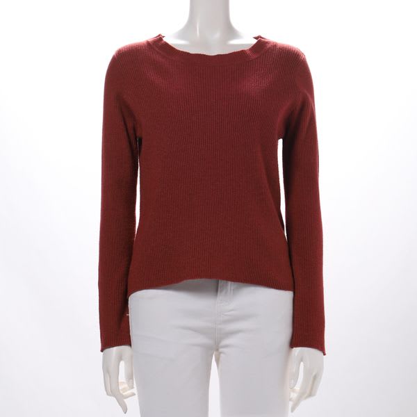 ラウンドネックのリブニット。ボトムスにはペンシルスカートを合わせて女性らしく、デニムパンツでカジュアルにまとめてもいいですね。