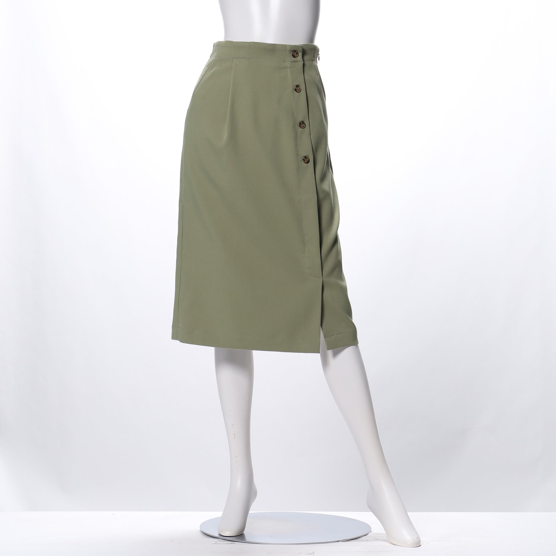 フロントボタンがポイントのラップ風スカートです。とろみブラウスと合わせてレディライクに、コンパクトなハイゲージニットと合わせたキレイめカジュアルスタイルも良いですね。