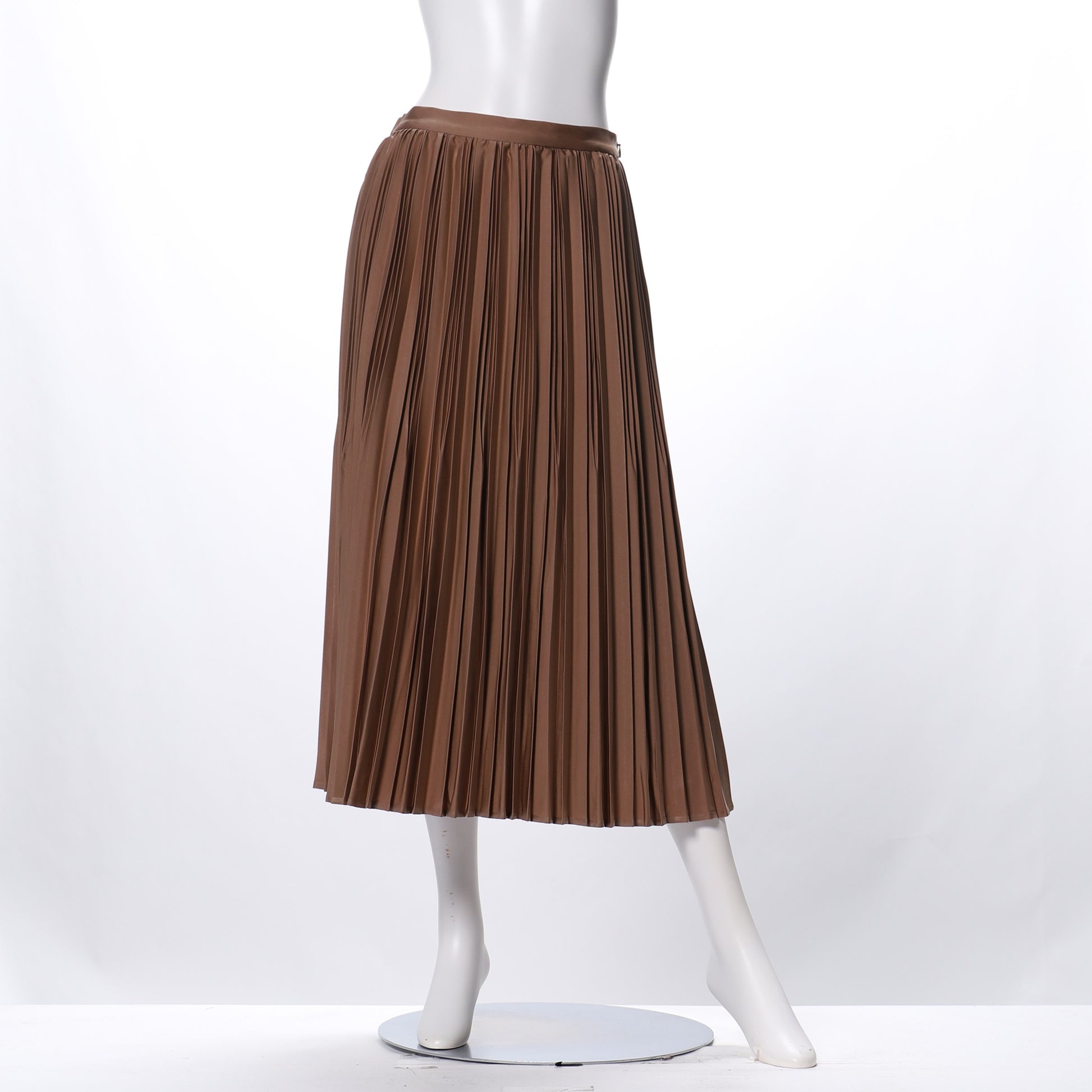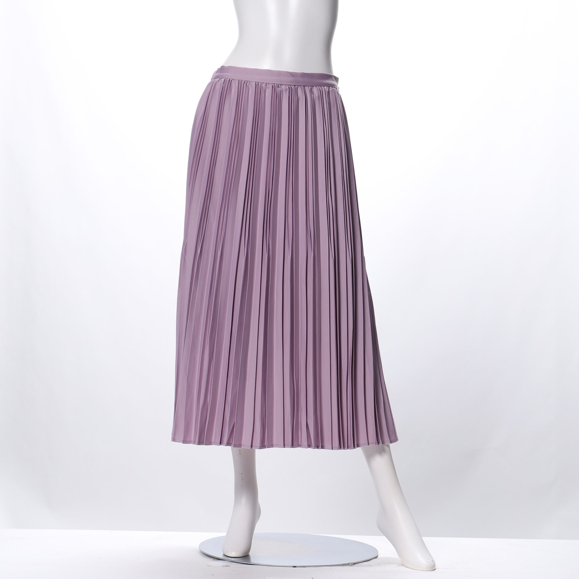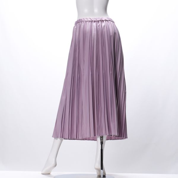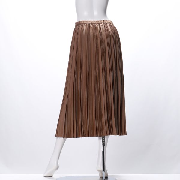 光沢感のある素材がポイントのアコーディオンプリーツスカートです。とろみブラウスとスウェードパンプスを合わせて上品なスタイルや、ドルマンスリーブニットとフラットシューズを合わせてカジュアルなスタイルも素敵ですよ。