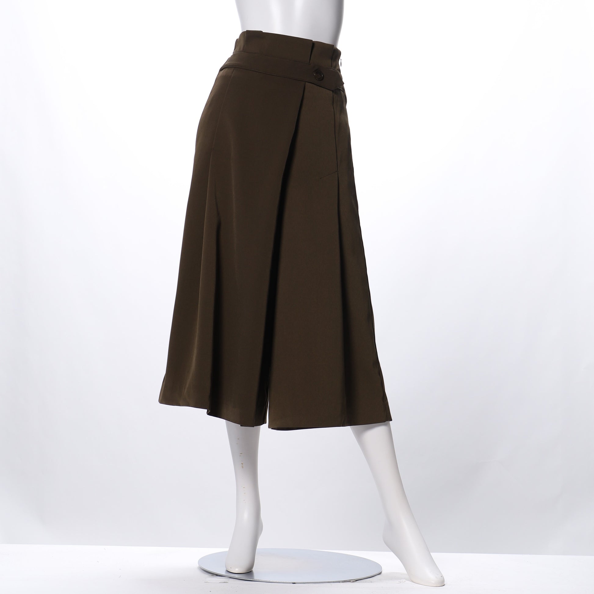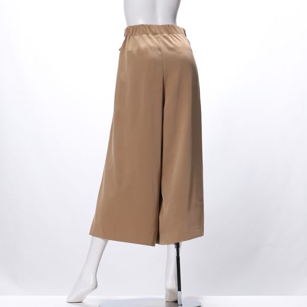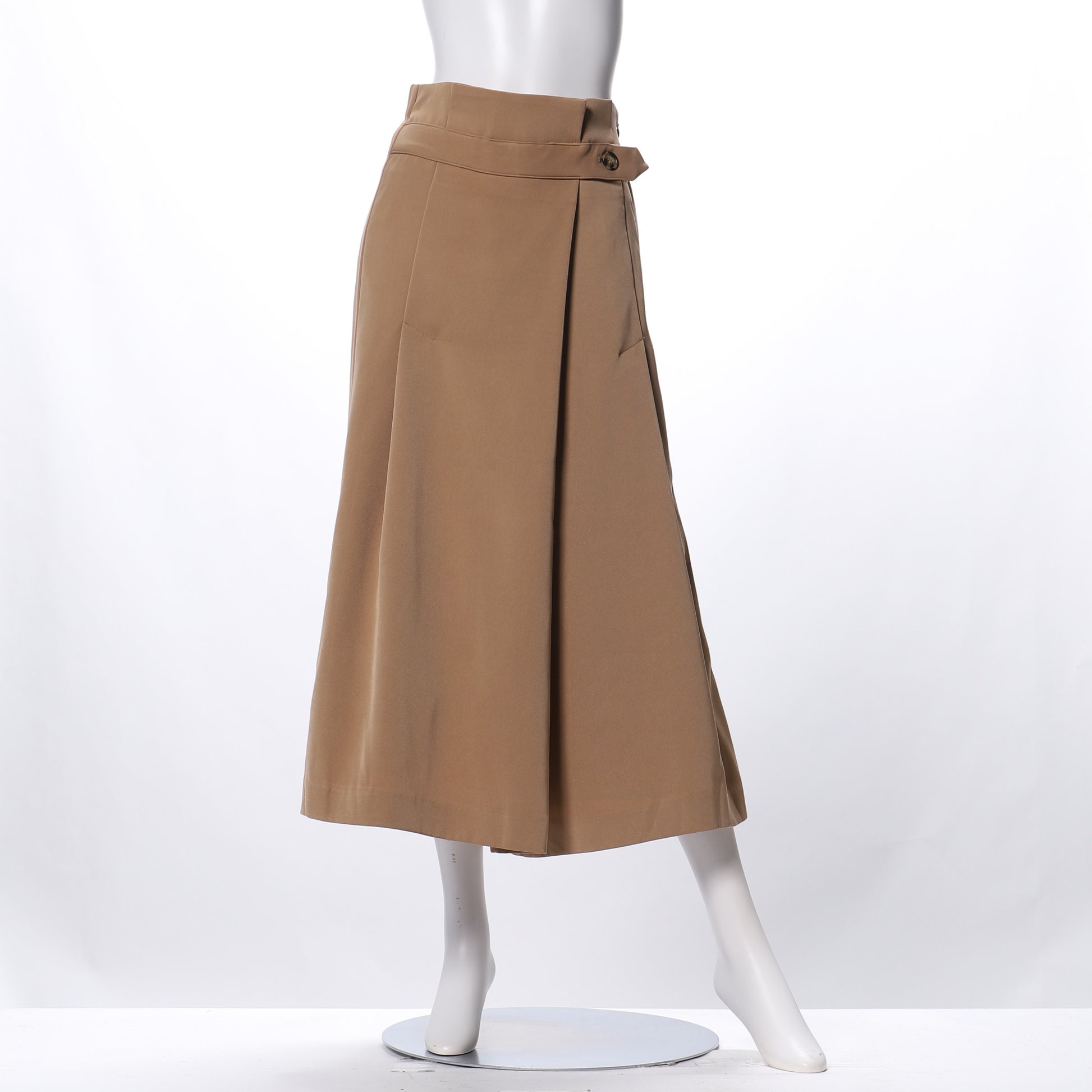 ラップスカートのように見えるデザインがポイントのフレアパンツです。バンドカラーブラウスとスウェードパンプスを合わせて上品なスタイルや、ざっくりニットとスニーカーを合わせてカジュアルなスタイルもいいですね。