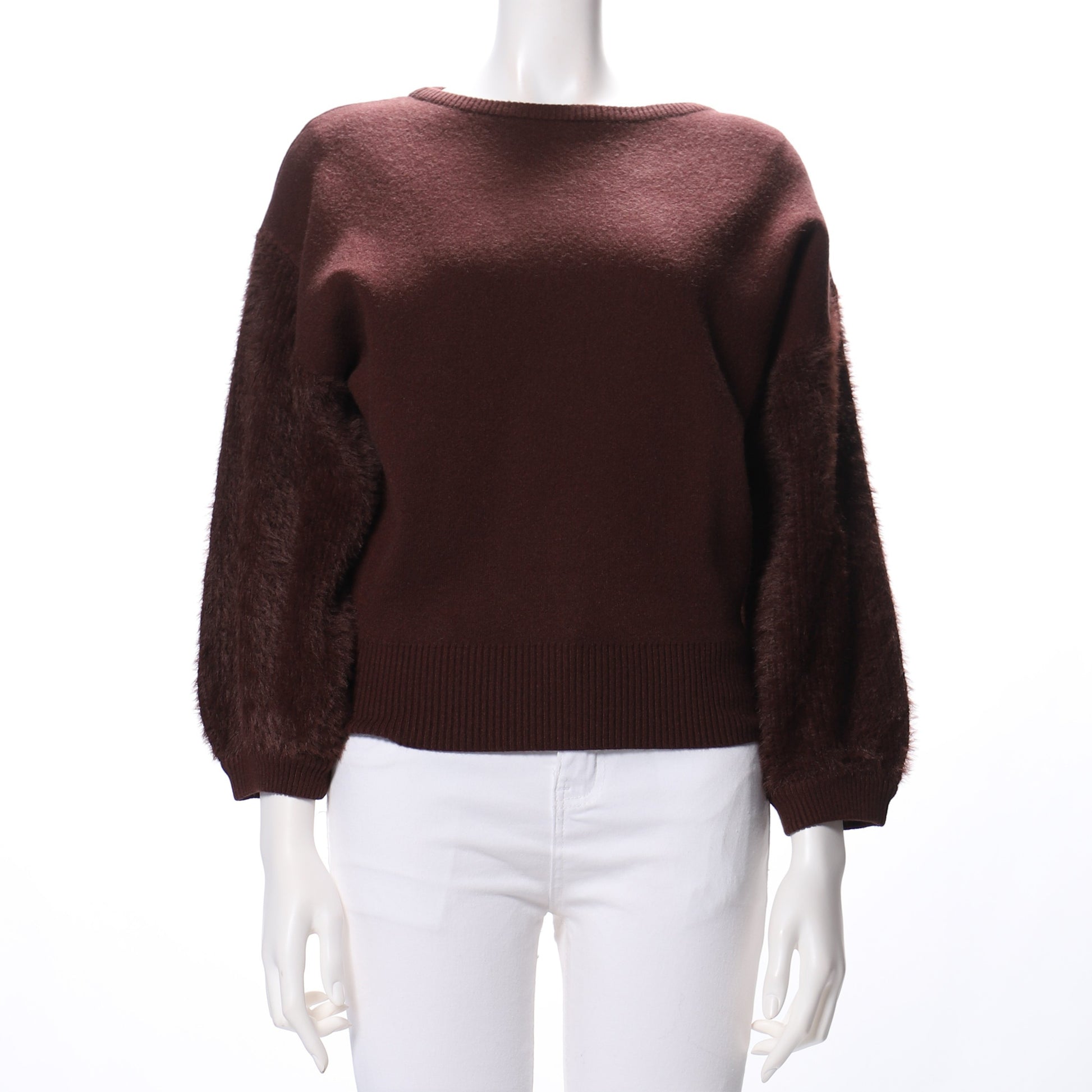 お袖の異素材切り替えがポイントのニットです。フレアスカートと合わせてフェミニンスタイルに、デニムパンツと合わせたカジュアルスタイルも素敵です。