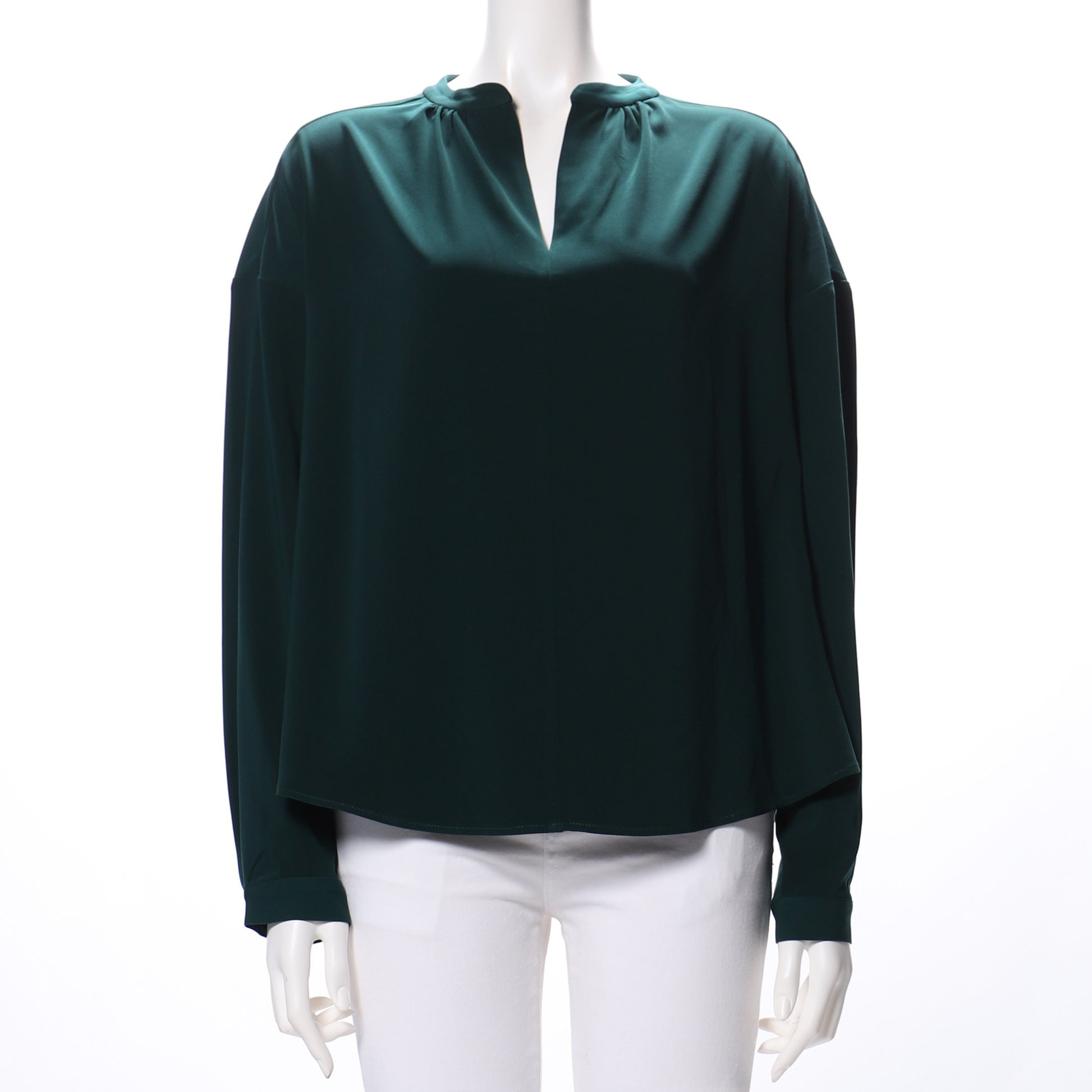「適度なとろみ感、さりげない光沢感、胸元のスッキリ感がよい感じでした。スタイリストさんのコーディネートで同梱のパンツに合わせました。」