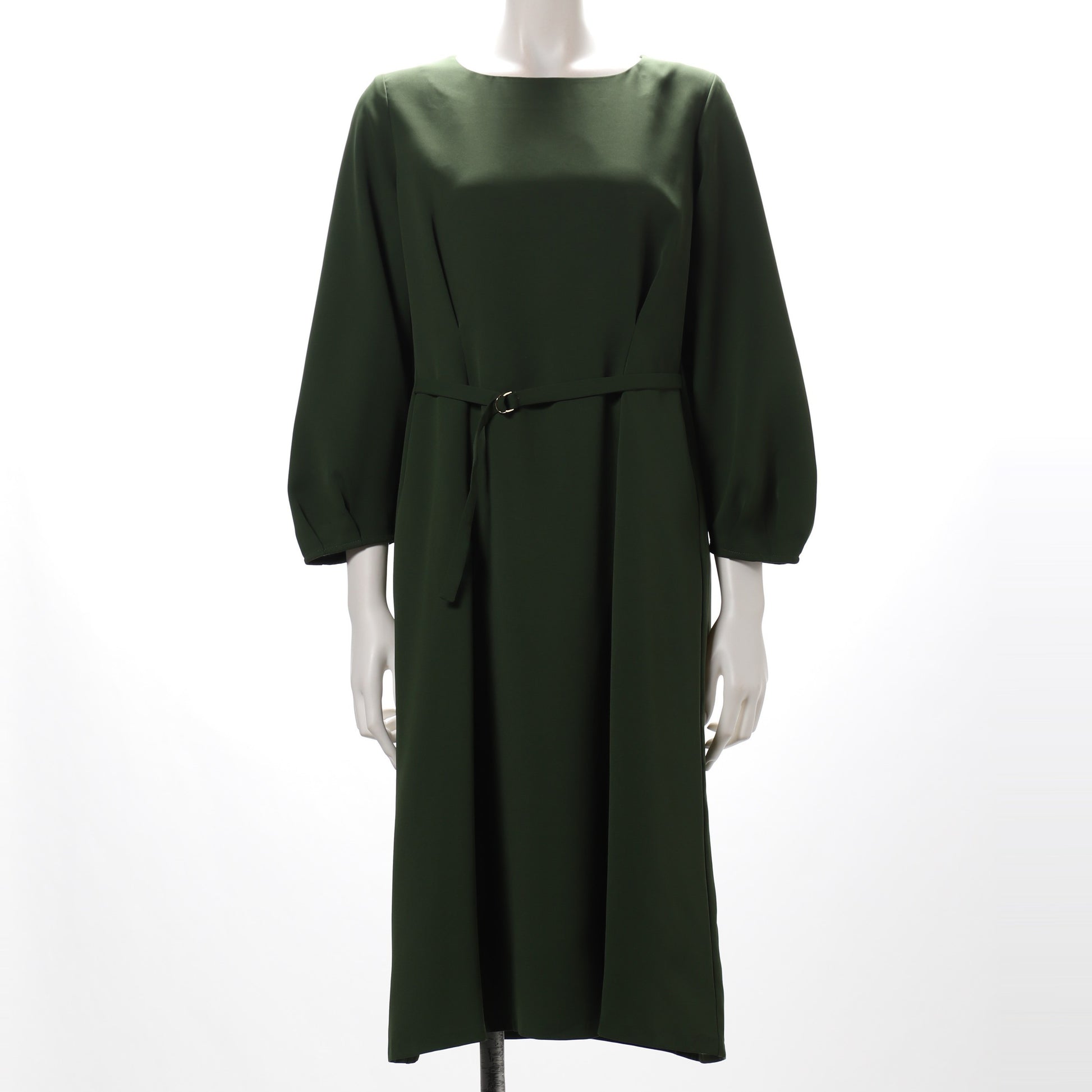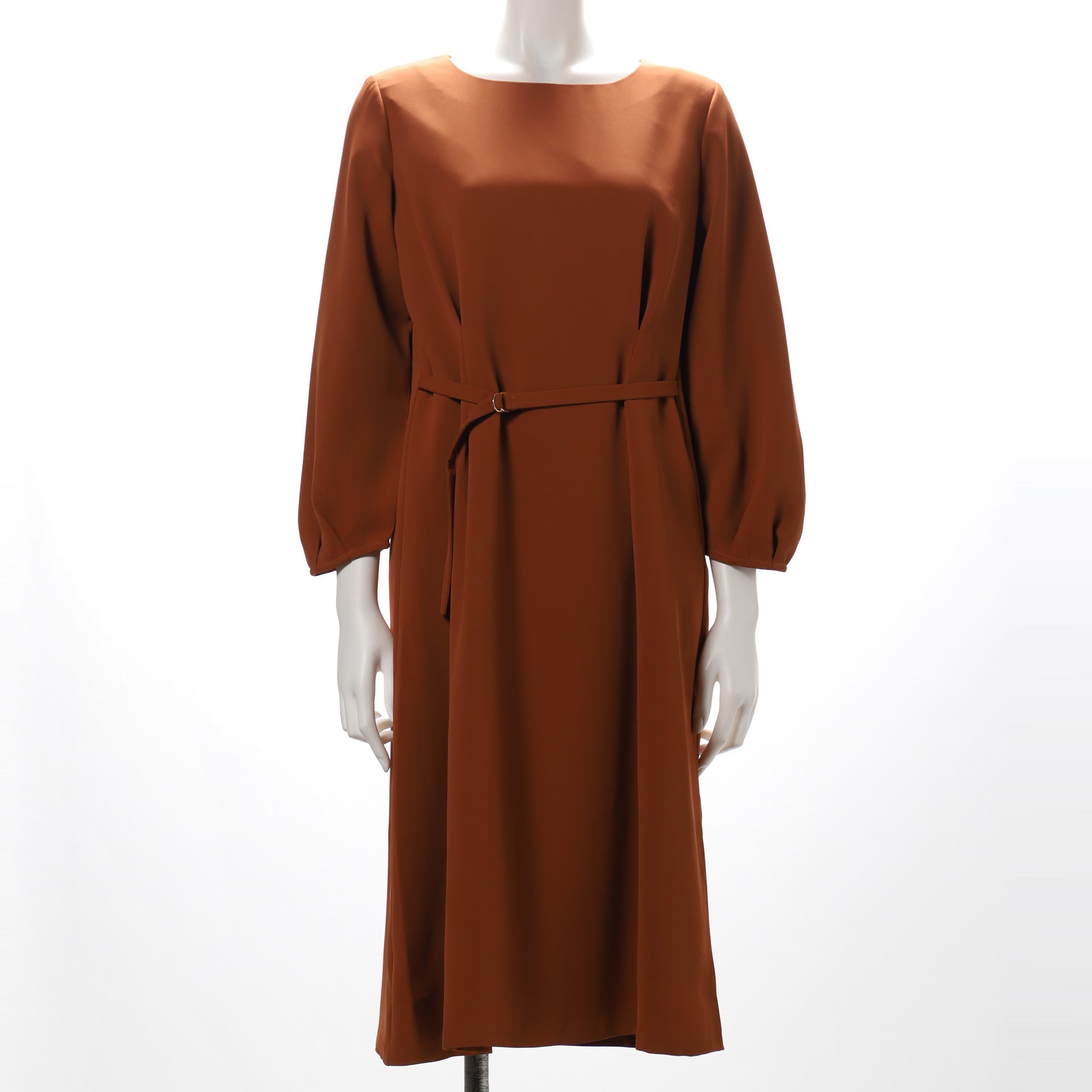 ベルトデザインがアクセントのワンピース。バーイヤリングとポインテッドトゥパンプスで辛めにも、パールロングネックレスとラウンドトゥパンプスで上品に仕上げてもいいですね。