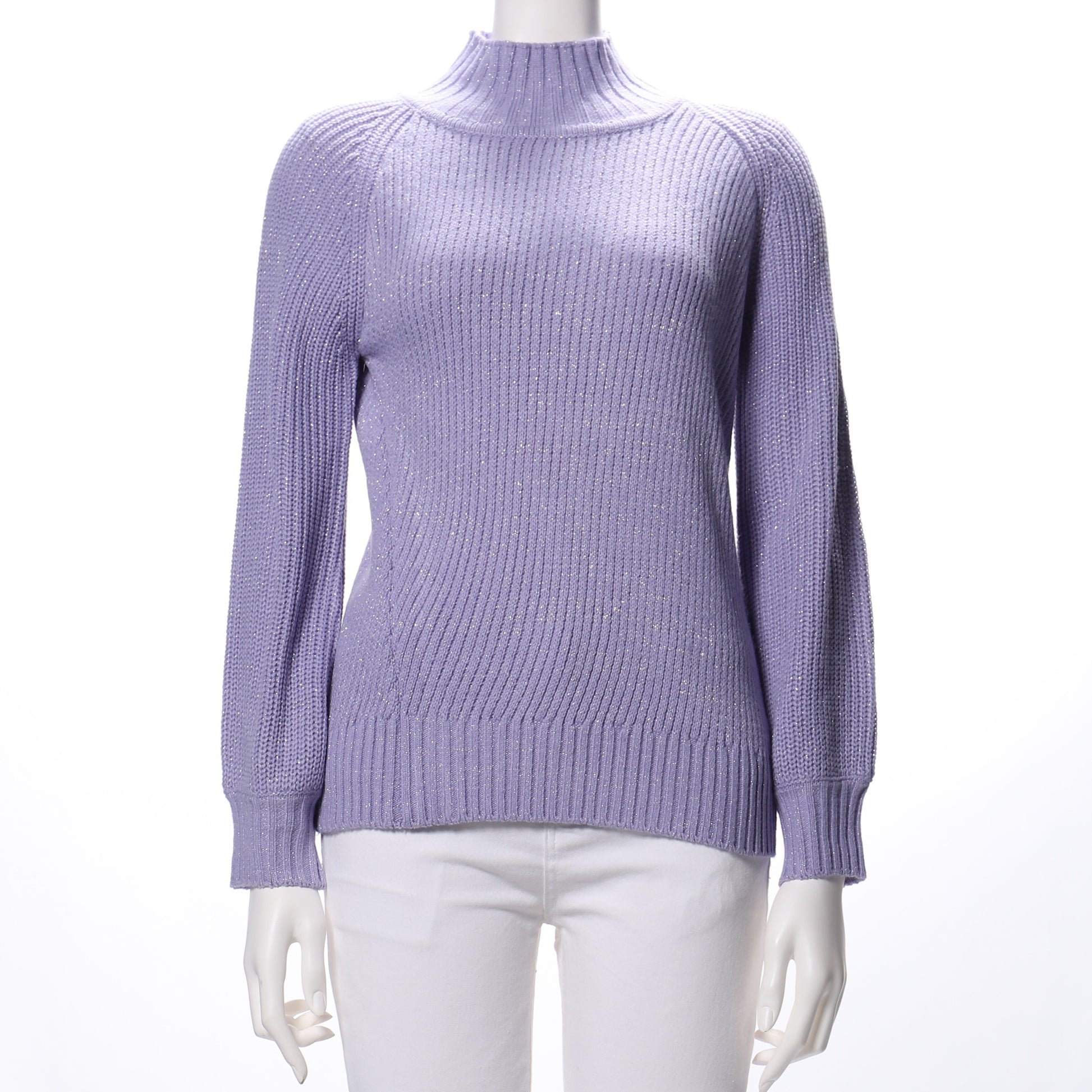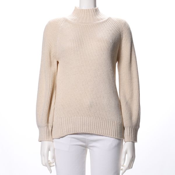 ラメ混素材のハイネックニットです。タイトスカートと合わせてレディライクに、ワイドパンツと合わせたクールスタイルも素敵ですね。