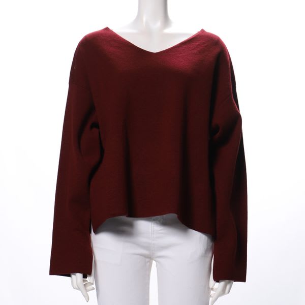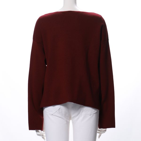 Vネックニットです。 プリーツスカートと合わせて、レディライクな仕上がりに。 ワイドパンツと合わせて、リラクシーな雰囲気にまとめても◎