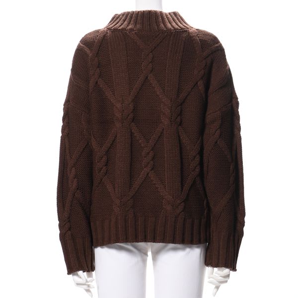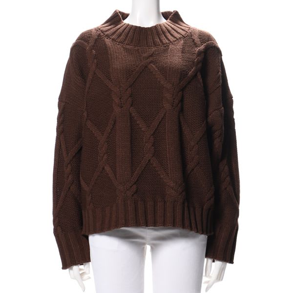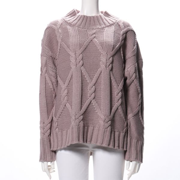 特徴的なケーブル編みのゆったりニット。フレアパンツにスニーカーでキレイめカジュアルコーデや、ロングプリーツスカートにショートブーツを合わせたレディライクコーデも良いですね!
