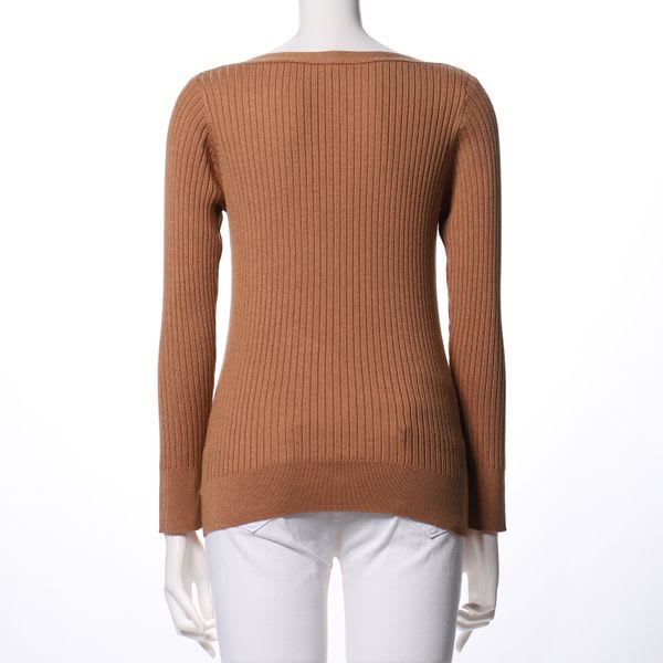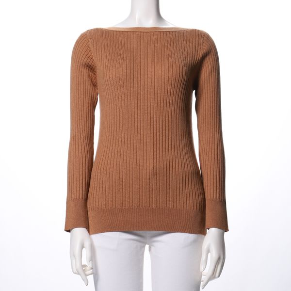 スラッシュドネックのリブニット。フレアスカートとラウンドパンプスを合わせてレディライクなスタイルに、フレアパンツとスニーカーを合わせてカジュアルスタイルもいいですね◎