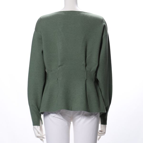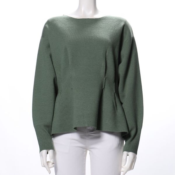 ウエストタックのペプラムニット。ボトムスにはテーパードパンツを合わせて甘辛MIXスタイルに、タイトスカートで女性らしく仕上げてもステキです。