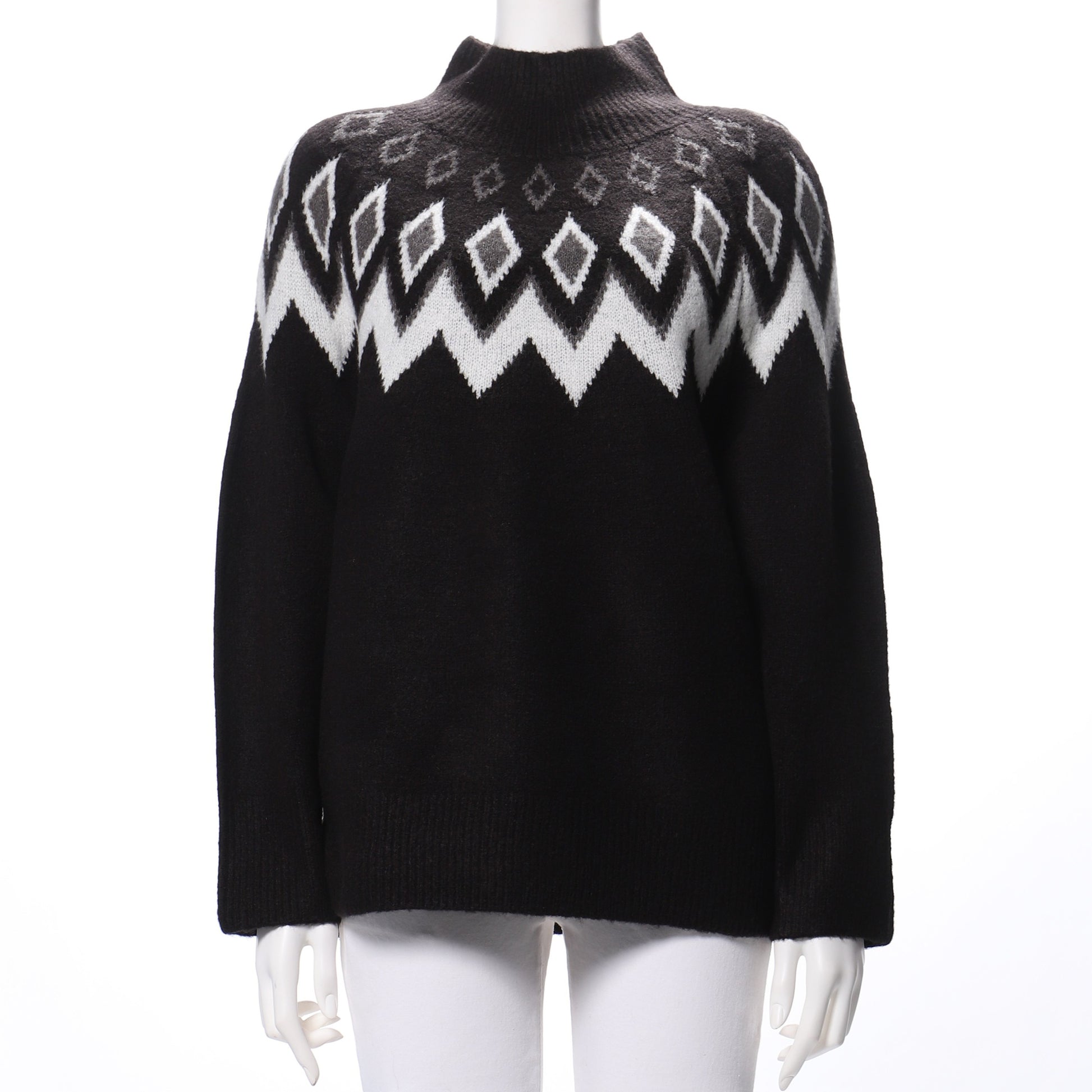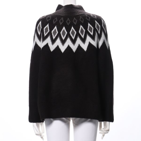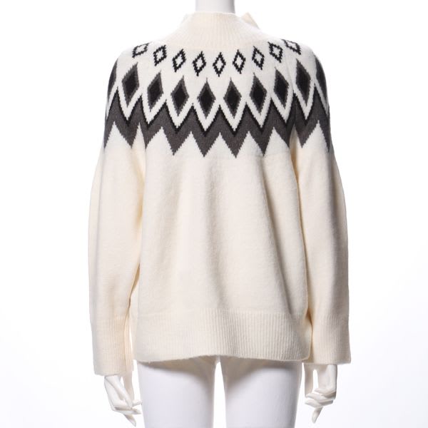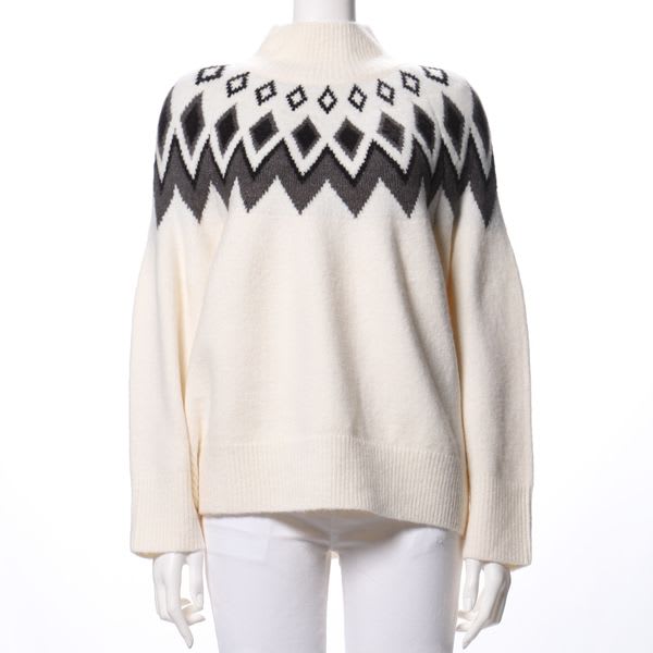 ノルディック柄のハイネックニット。ボトムスにはデニムパンツを合わせてカジュアルに、プリーツスカートを合わせた甘さのある着こなしもいいですね。
