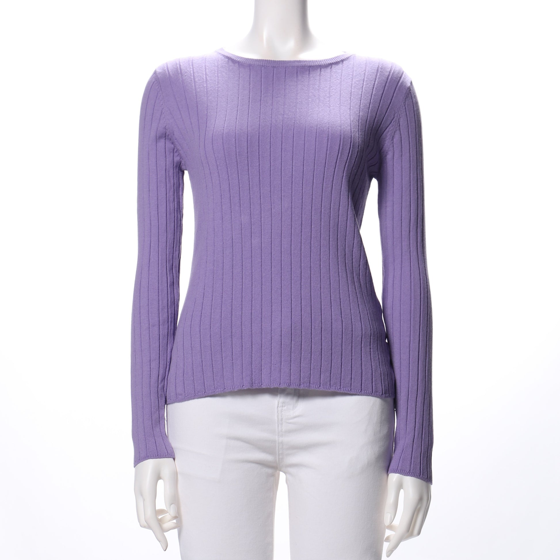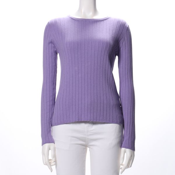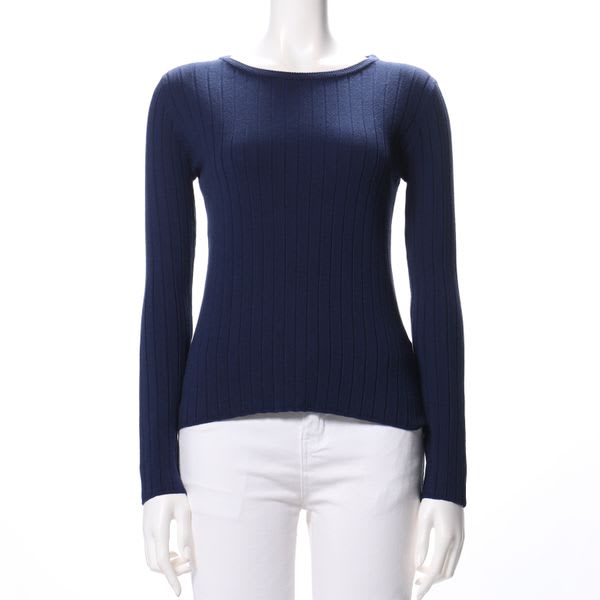 シンプルなリブニットです。デニムパンツを合わせてカジュアルスタイルに、フレアスカートを合わせてフェミニンスタイルも◎ですよ。