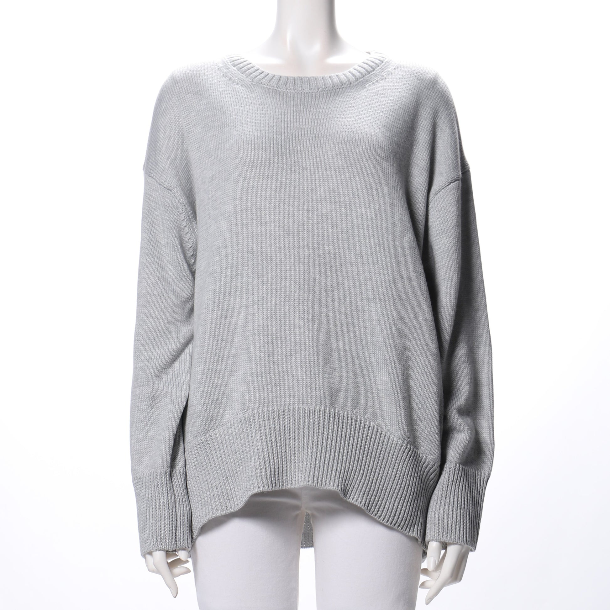 ラウンドネックのドロップショルダーニット。ボトムスにはテーパードパンツとポインテッドトゥパンプスを合わせて辛めにも、デニムパンツとスニーカーでカジュアルに仕上げてもステキです。