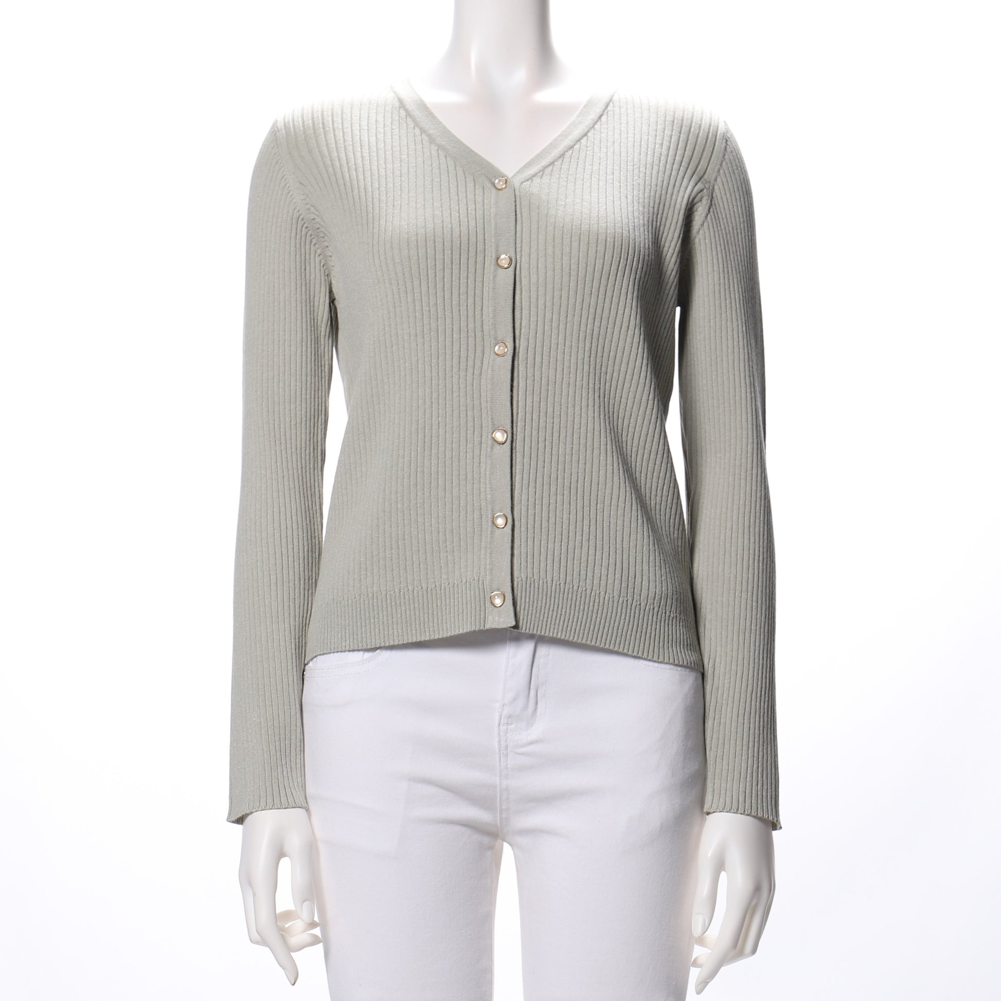程よくフィット感のあるリブカーディガン。ボタンをしめ、Vネックプルオーバとしてタイトスカートを合わせた女性らしい着こなしや、カットソーとワイドパンツを合わせて、カジュアルな仕上がりも素敵です。