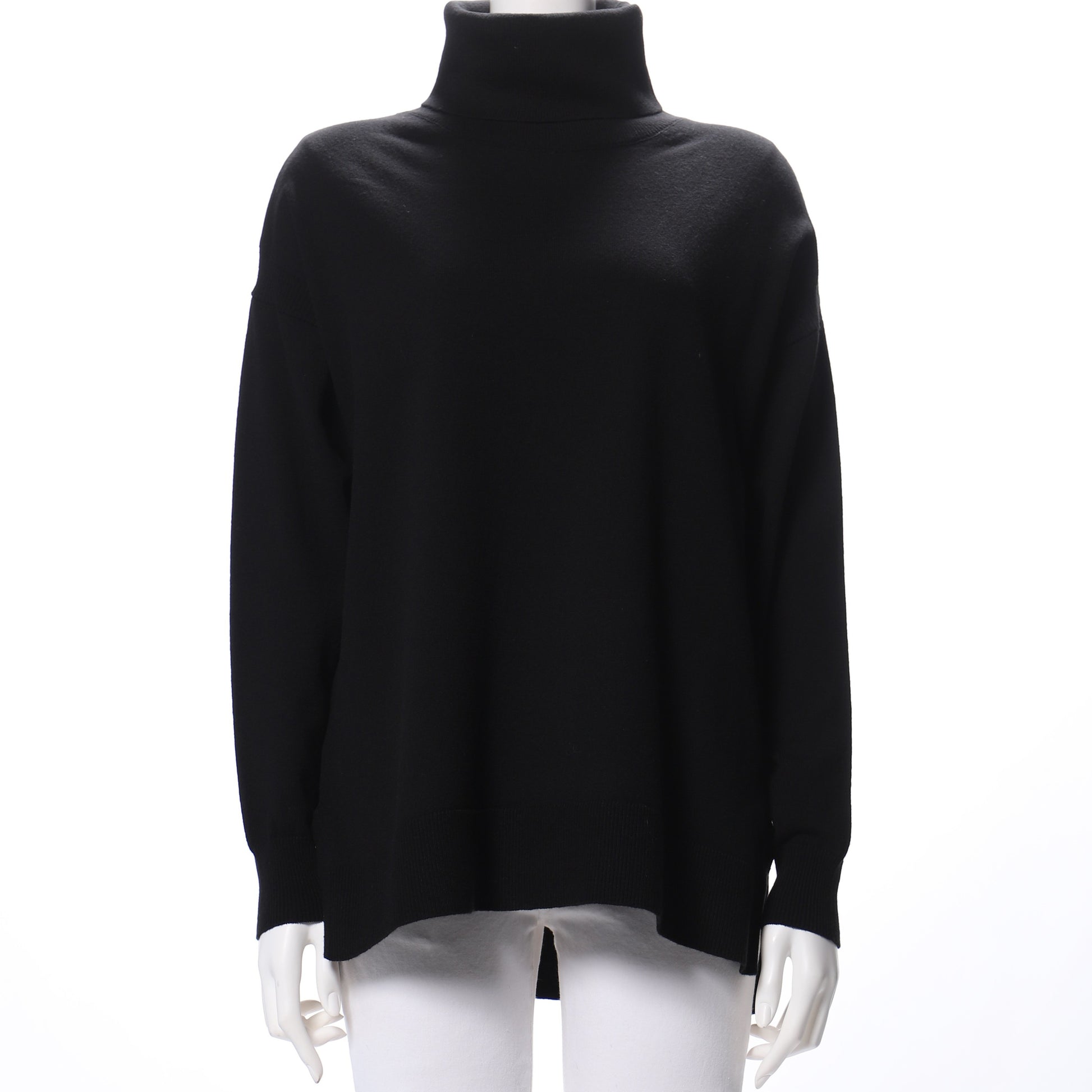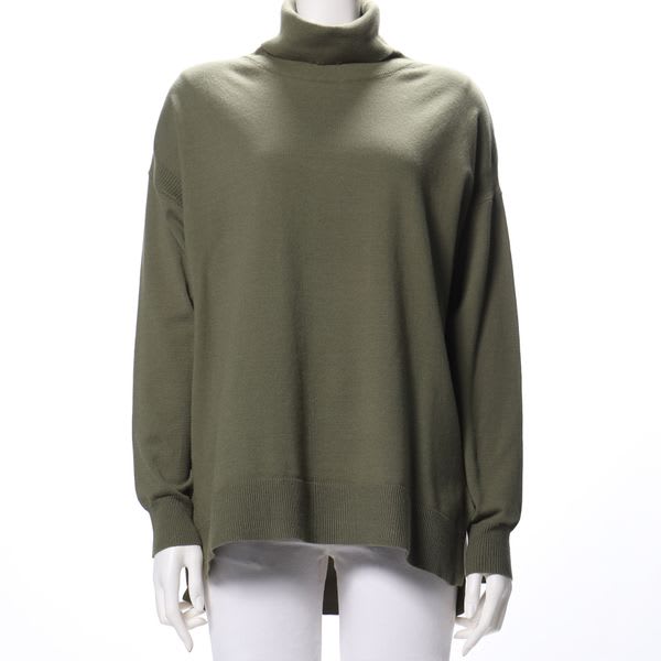 ドロップショルダーのタートルネックニットです。タイトスカートと合わせてレディライクに、ワイドパンツと合わせたクールスタイルも良いですね。