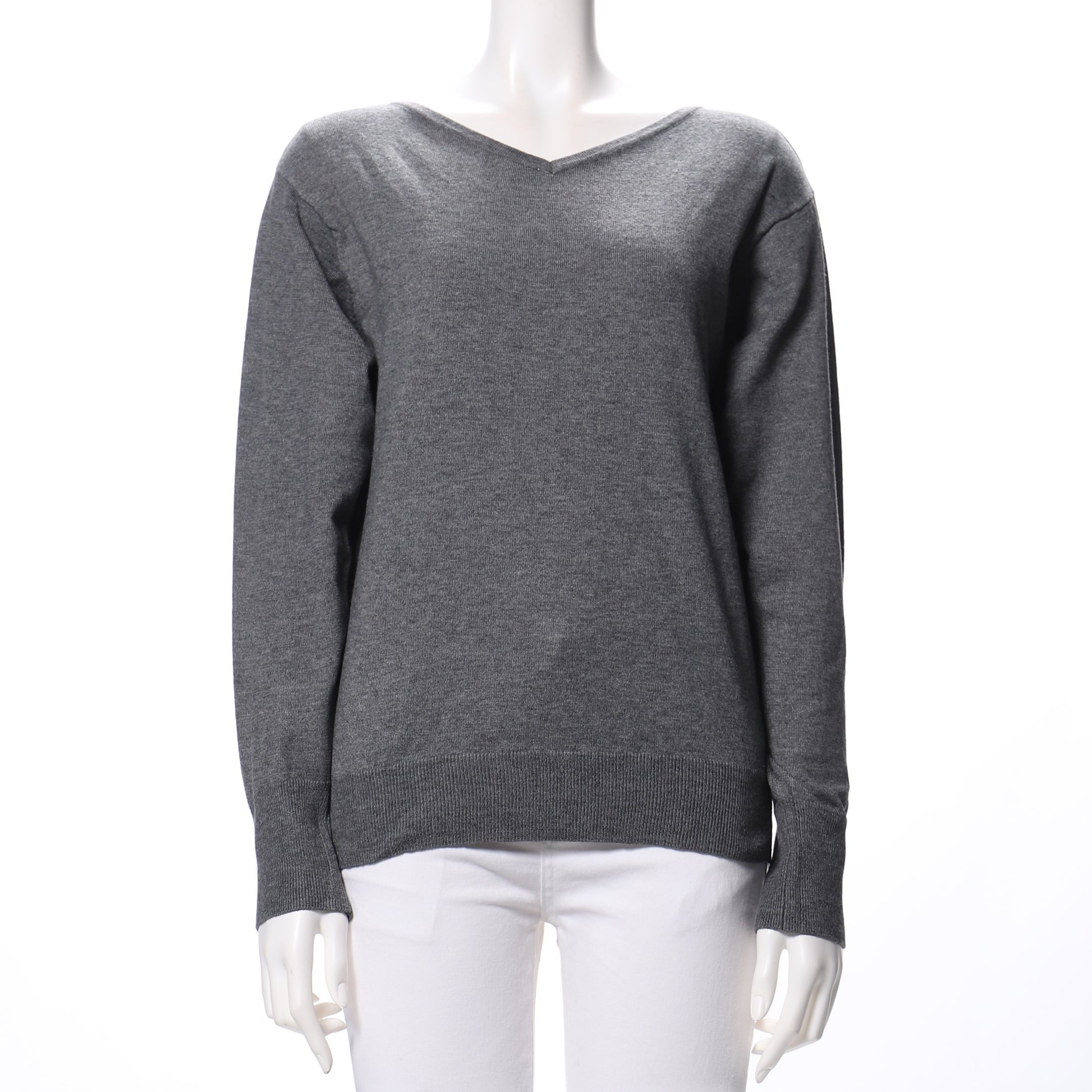 シンプルなデザインのVネックニット。タイトスカートとラウンドパンプスを合わせて女性らしいスタイルに、テーパードパンツとポインテッドトゥパンプスを合わせてスタイリッシュなスタイルもおすすめです!