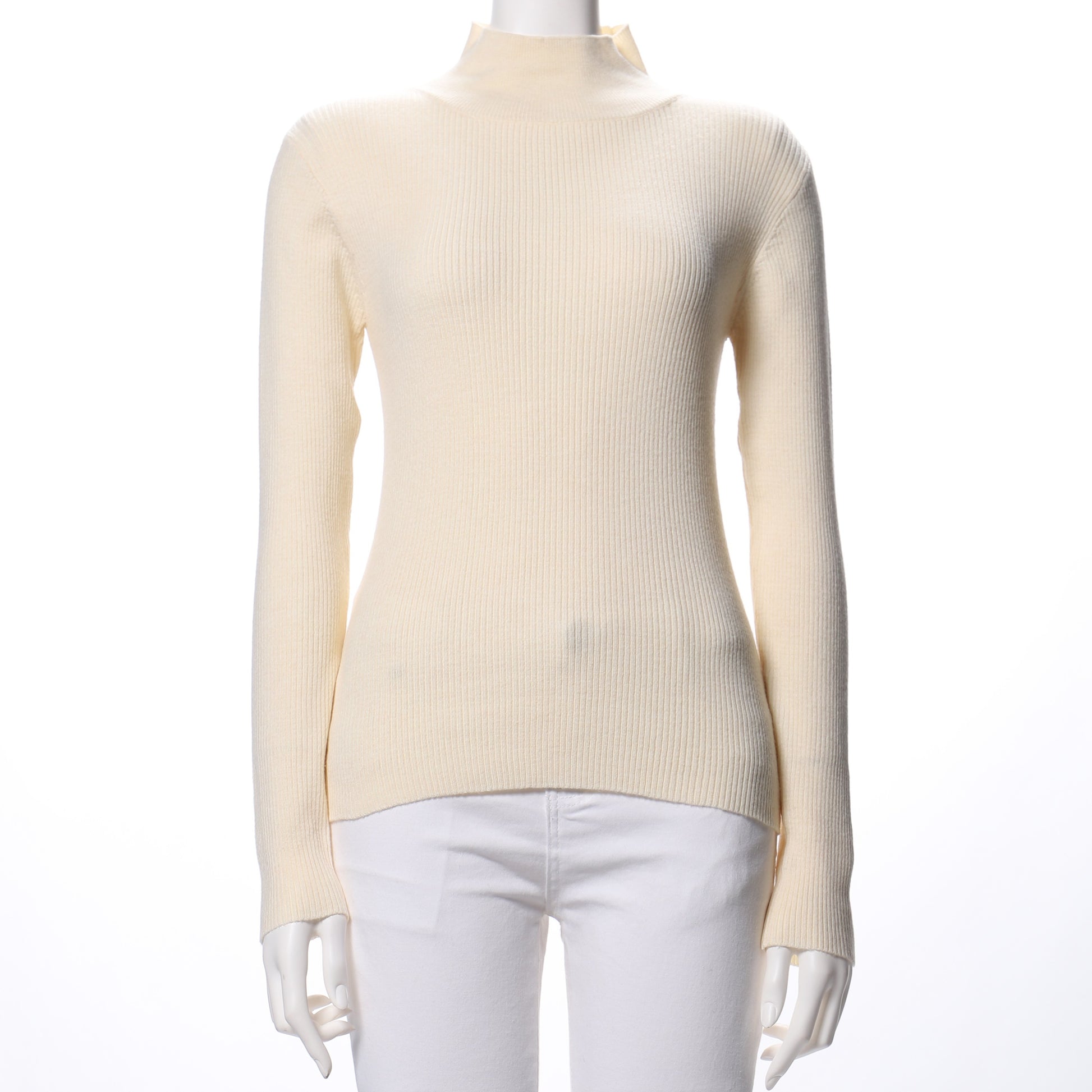 ハイネックのリブニット。ロングギャザースカートとフラットシューズを合わせてカジュアルスタイルに、テーパードパンツとポインテッドトゥパンプスを合わせてスタイリッシュなスタイルもいいですね!