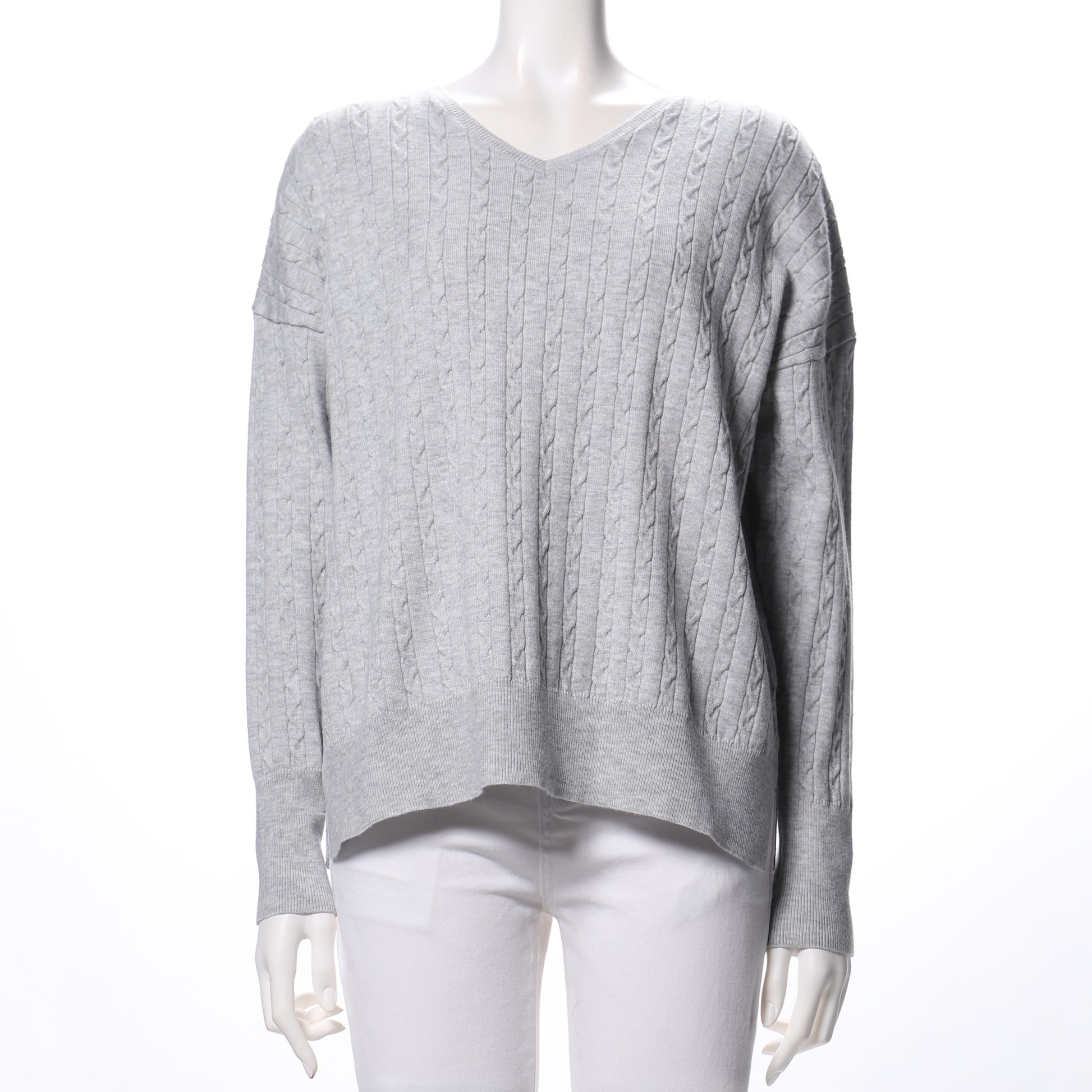 デザイン編みのVネックニットです。ワイドパンツを合わせてラフな着こなしに、タイトスカートを合わせてレディライクな着こなしも◎ですよ。