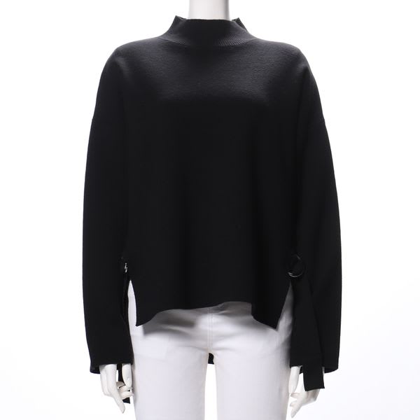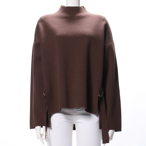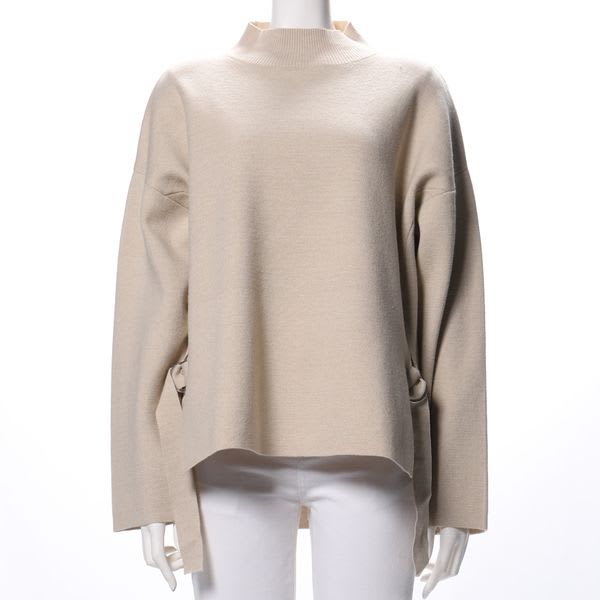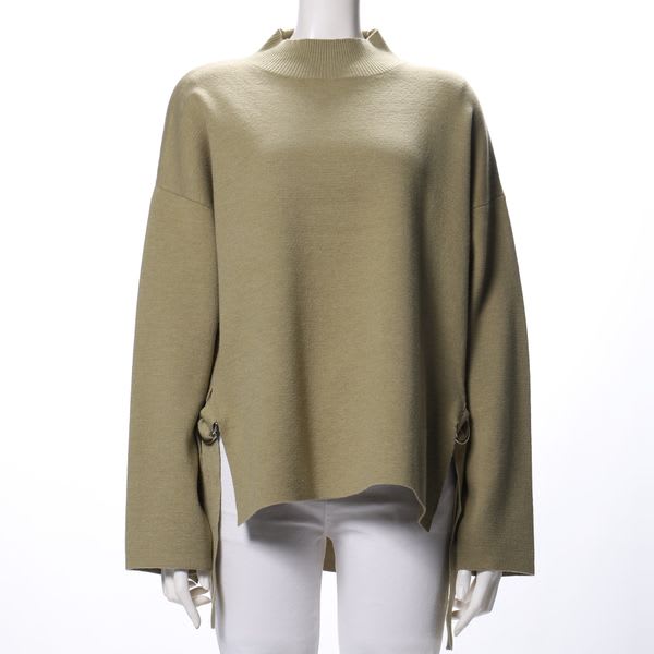 両サイドのスリットとDカンのデザインベルトがポイントのニットです。デニムパンツを合わせてカジュアルな着こなしに、タイトスカートを合わせてレディライクな着こなしもいいですね。