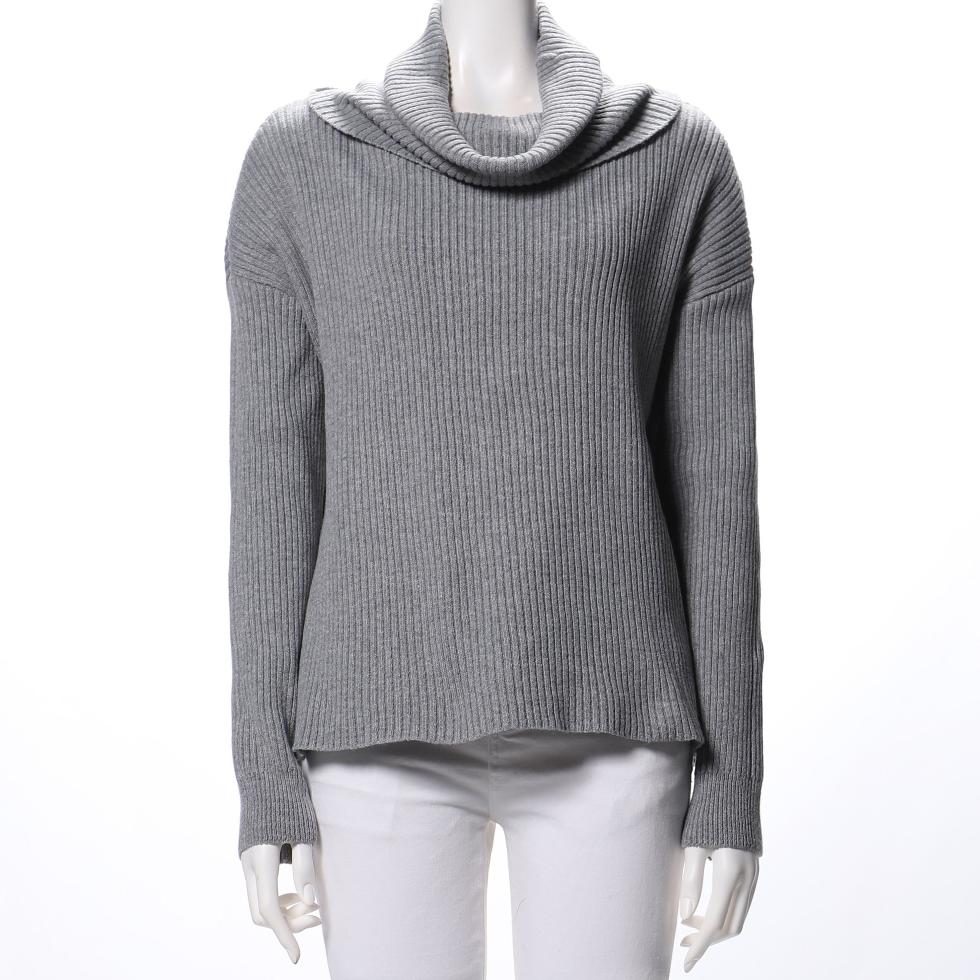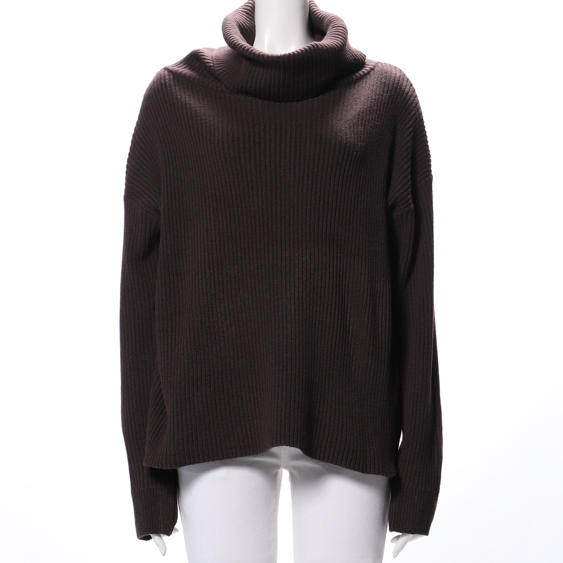 オフタートルネックのリブニット。タイトスカートを合わせて女性らしい着こなしに、デニムパンツを合わせてカジュアルスタイルもおすすめです!