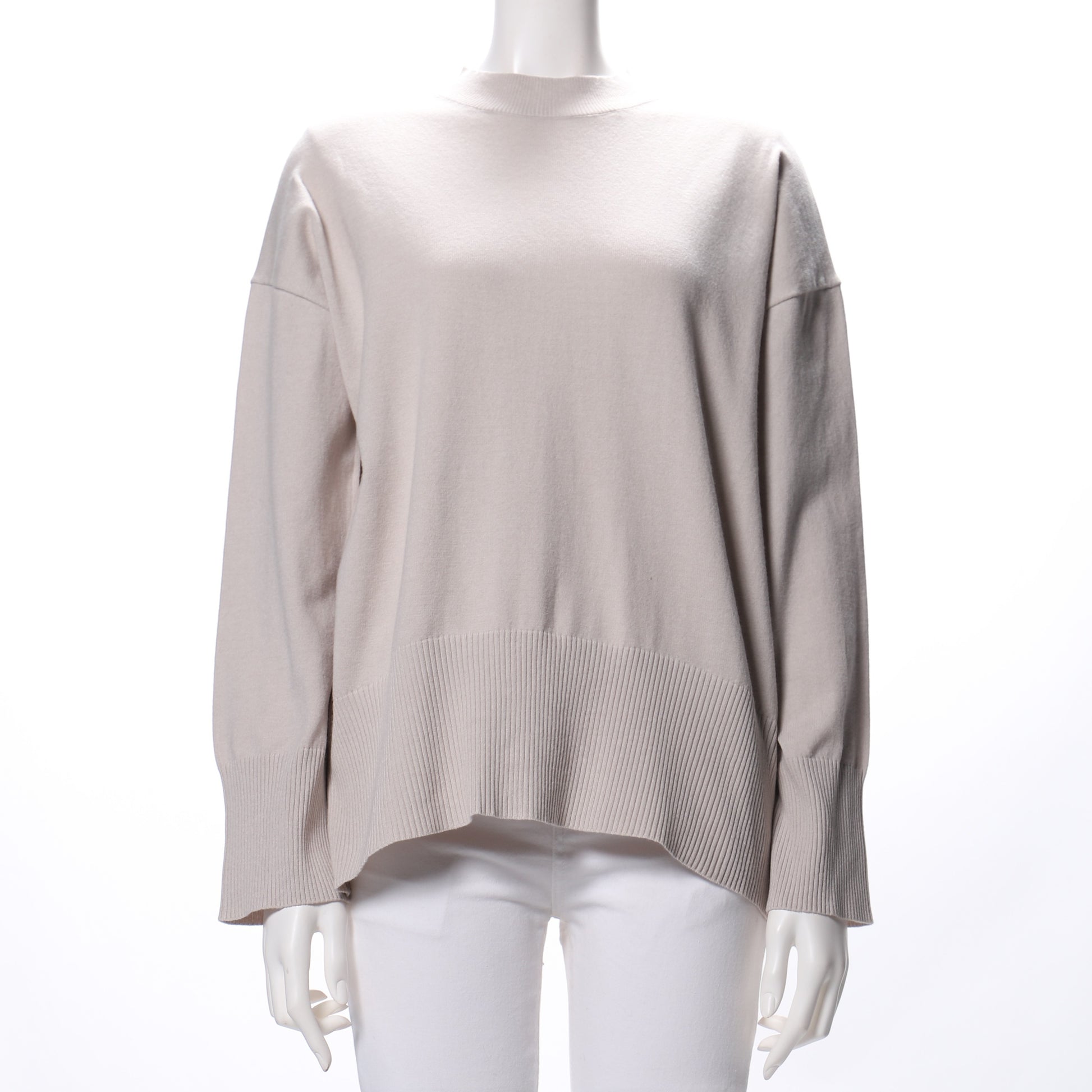 ドロップショルダーのハイゲージニット。ボトムスにはデニムパンツでカジュアルに、タイトスカートで女性らしくまとめてもいいですね。