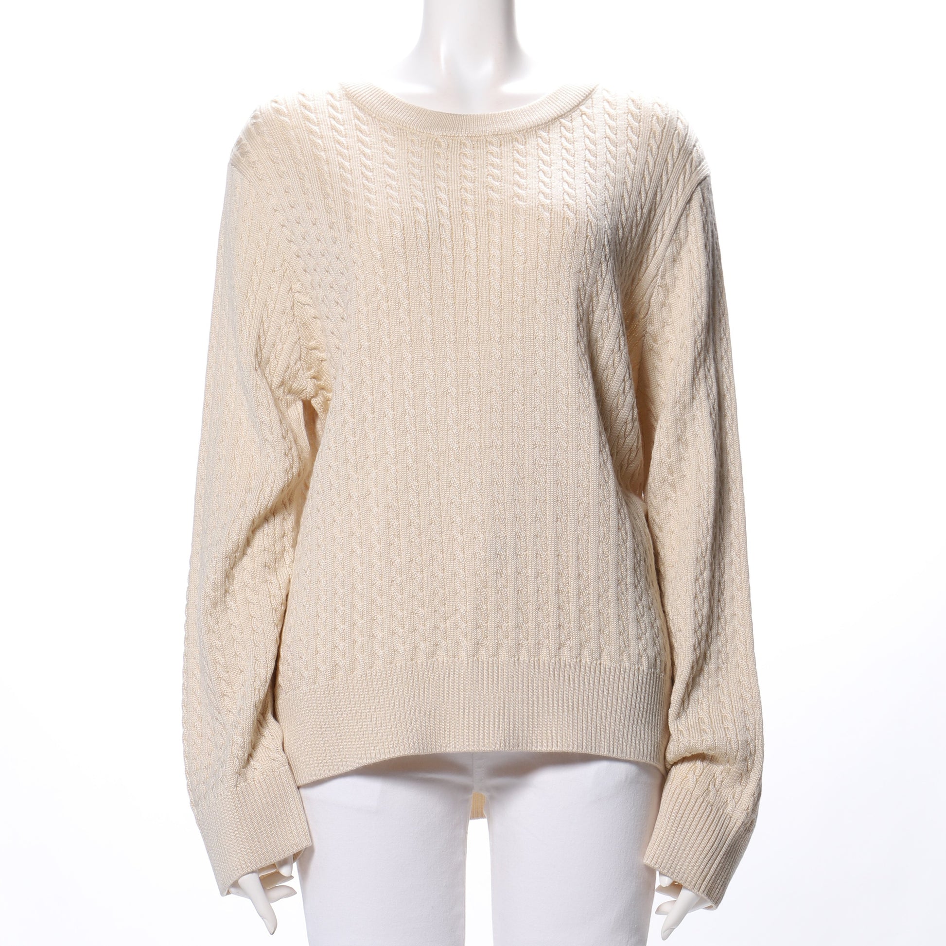 細ケーブル編みラウンドネックニット