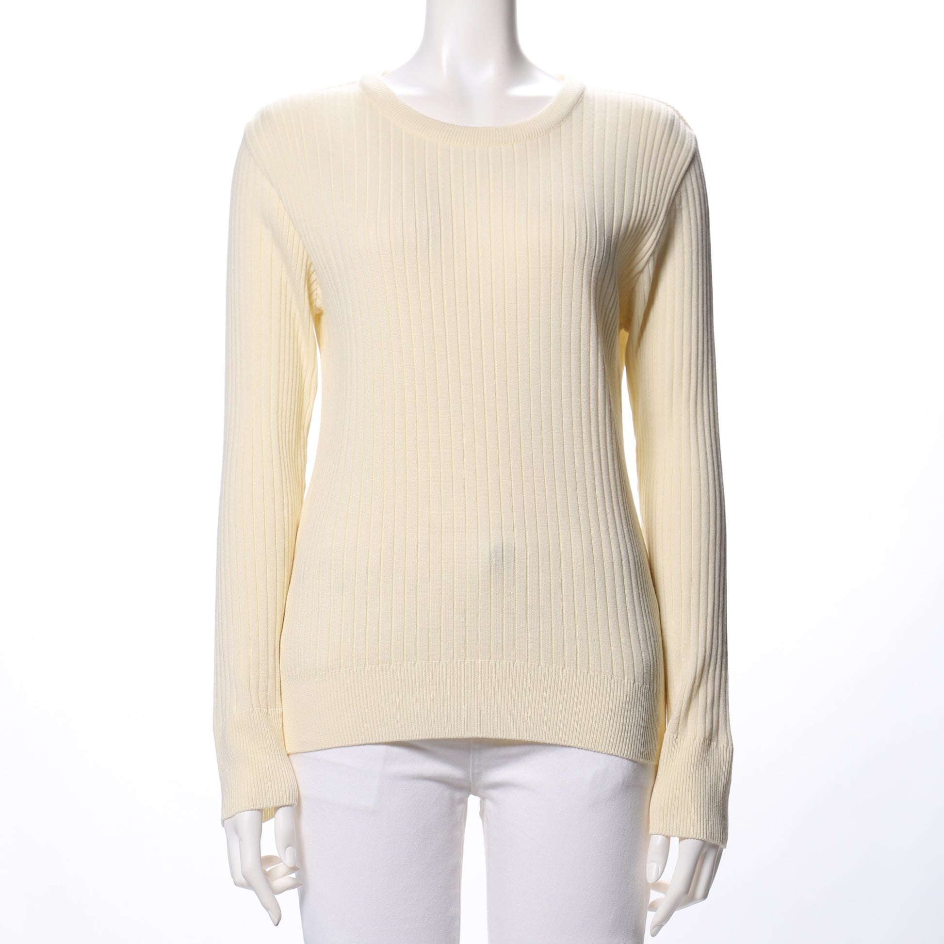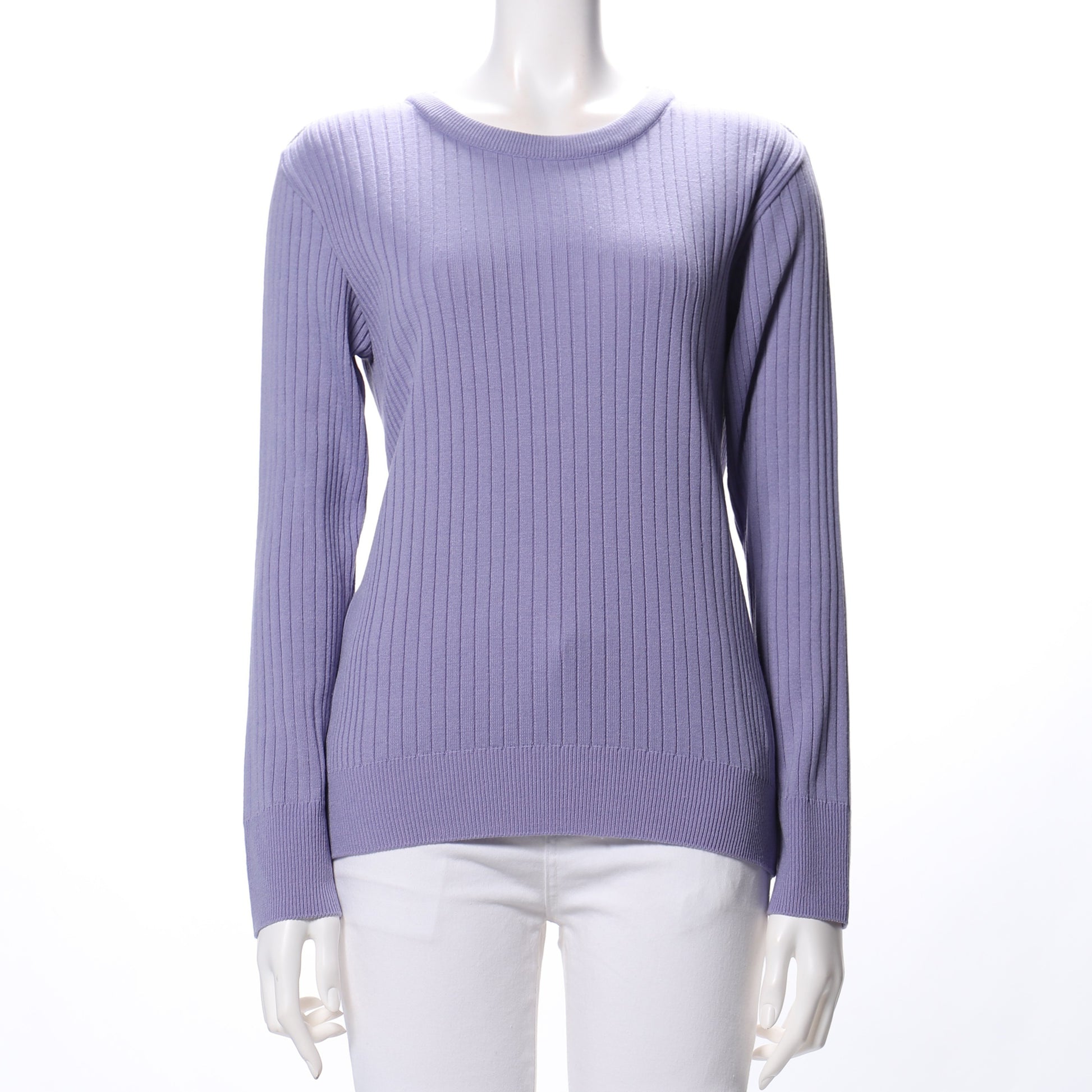 シンプルなデザインのラウンドネックリブニットです。フレアスカートとポインテッドトゥパンプスを合わせて上品なスタイルや、ワイドパンツとスニーカーを合わせてカジュアルなスタイルも素敵ですよ。