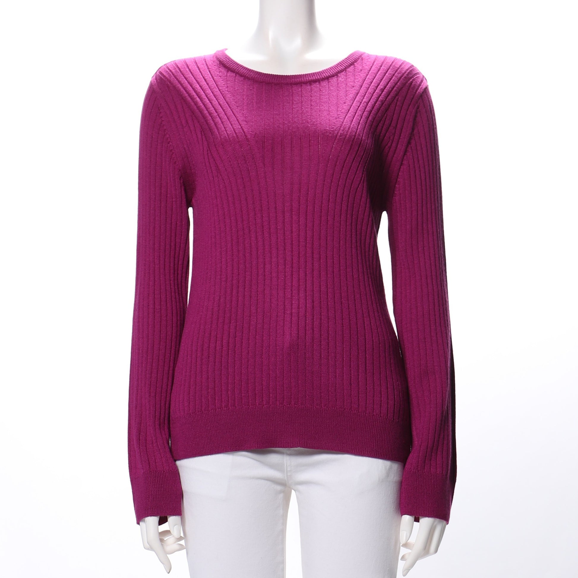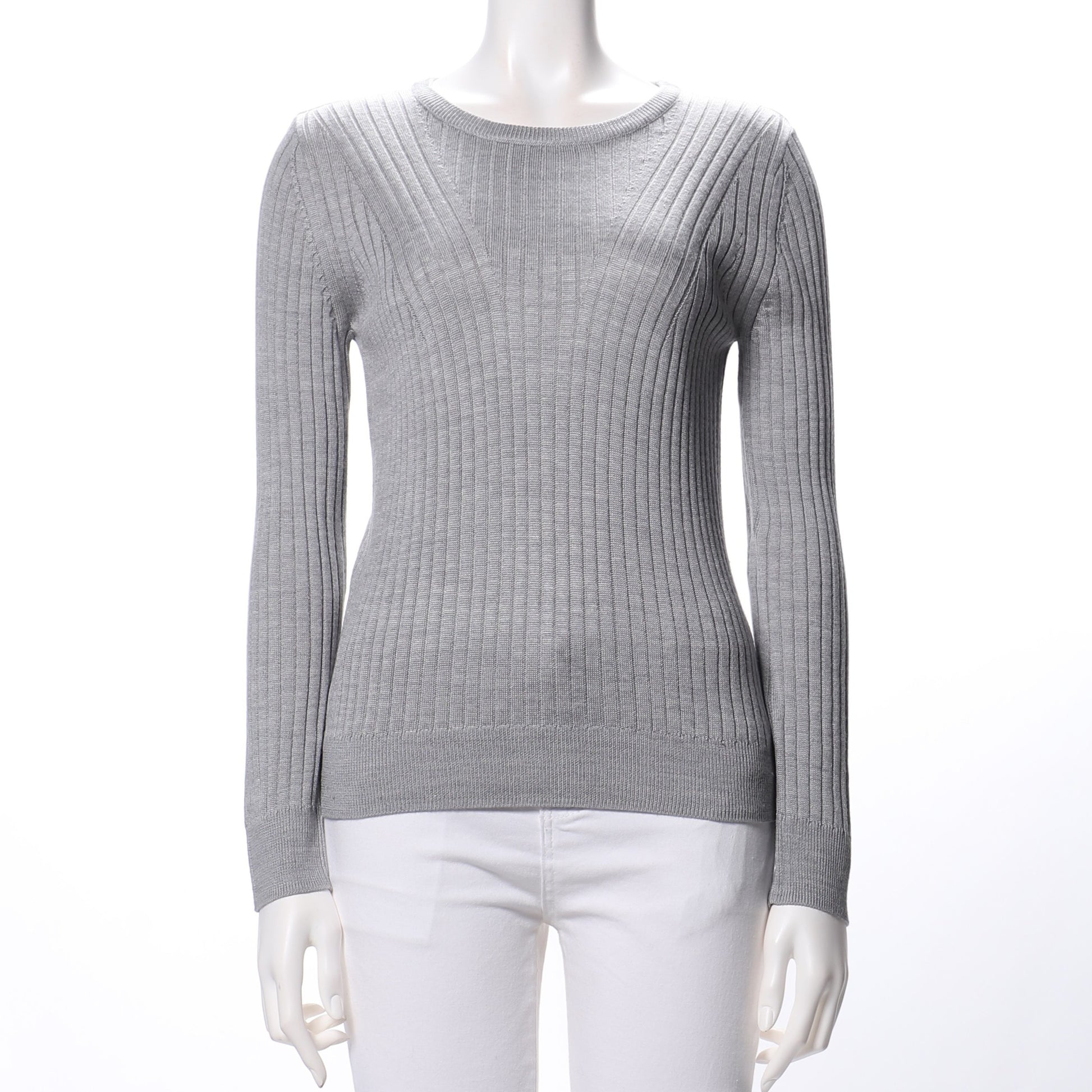 ラウンドネックのリブニットです。タイトスカートに合わせてキチンとコーデや、ワイドパンツに合わせたクールな感じもいいですね。