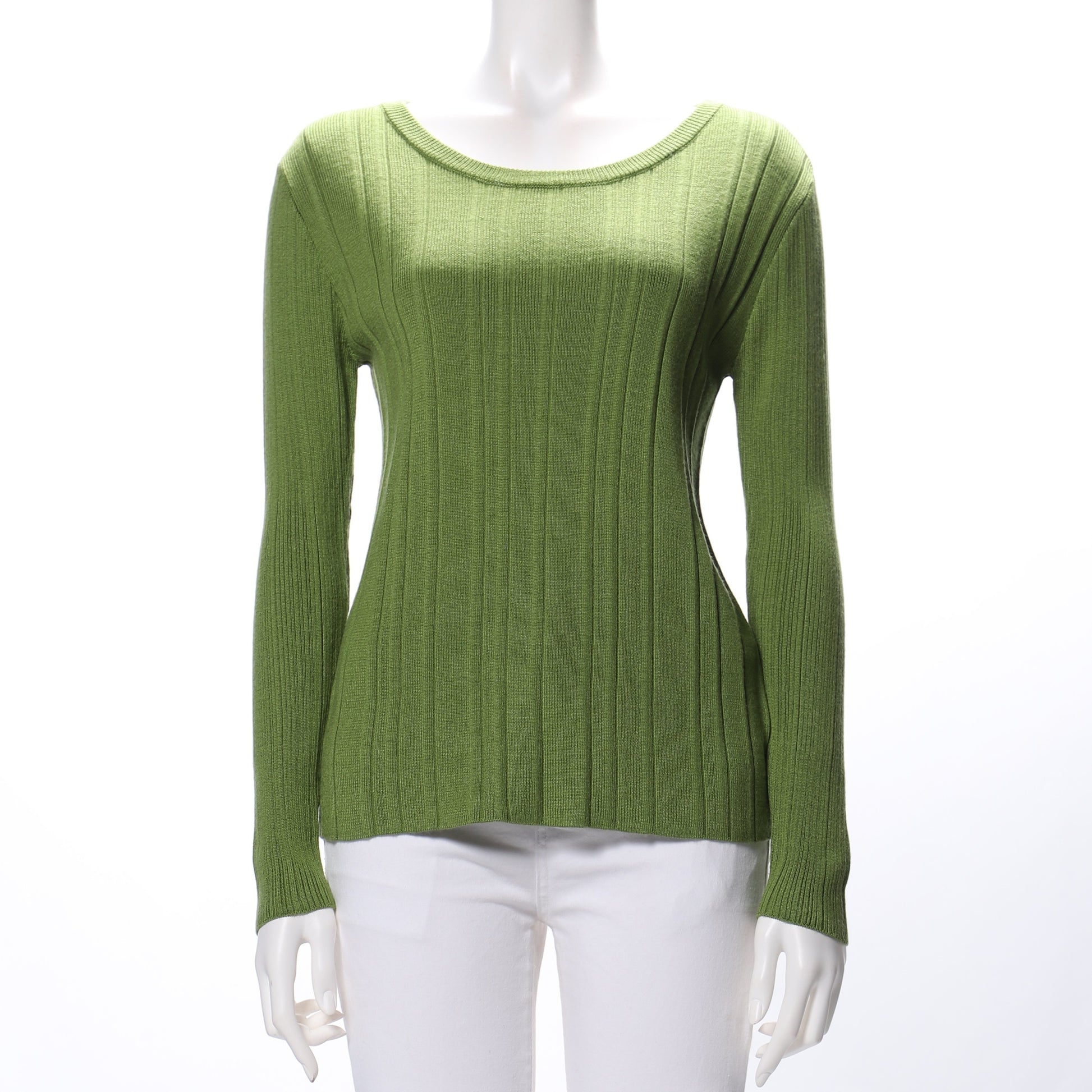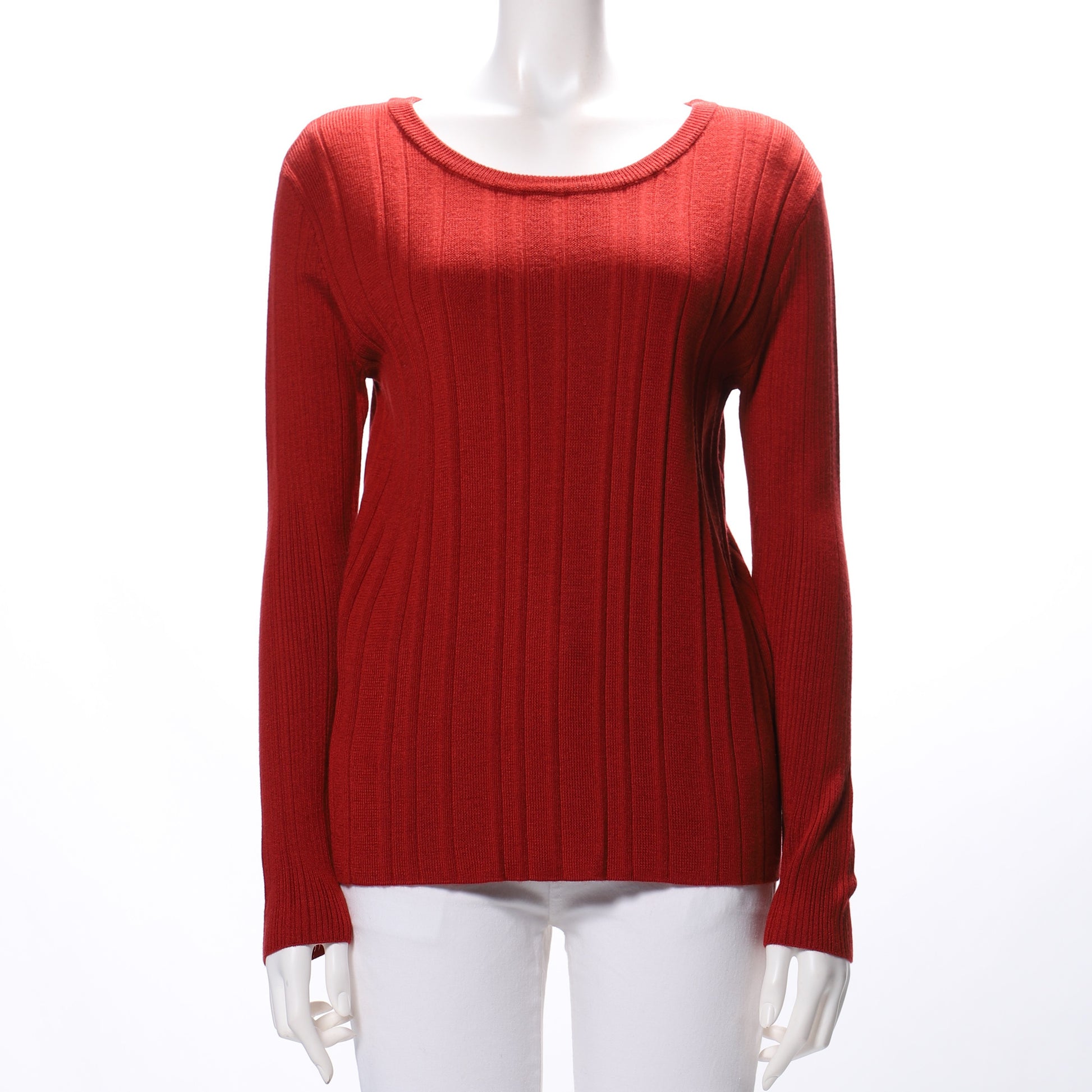 ワイドリブのラウンドネックニット。ボトムスにはワイドパンツを合わせてカジュアルに、フレアスカートで女性らしくまとめてもいいですね。