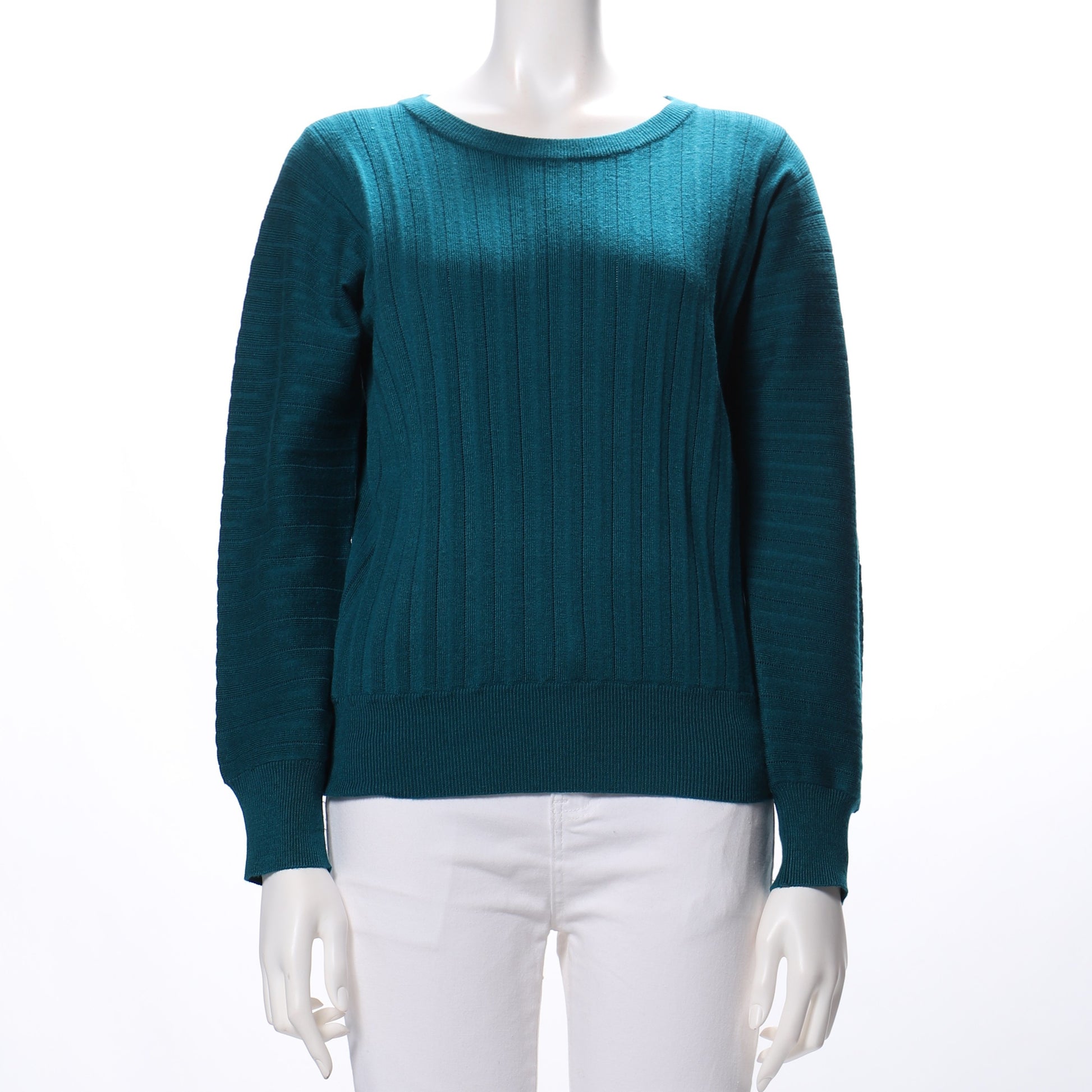 ワイドリブのラウンドネックニット。ボトムスにはテーパードパンツを合わせて辛さを加えても、プリーツスカートでリラックス感と女性らしさのある着こなしもステキです。
