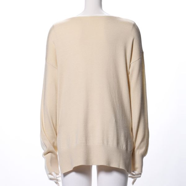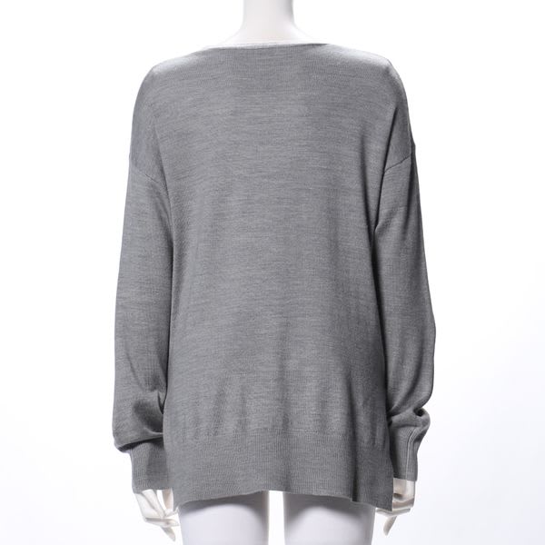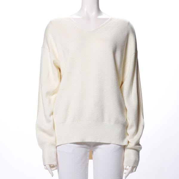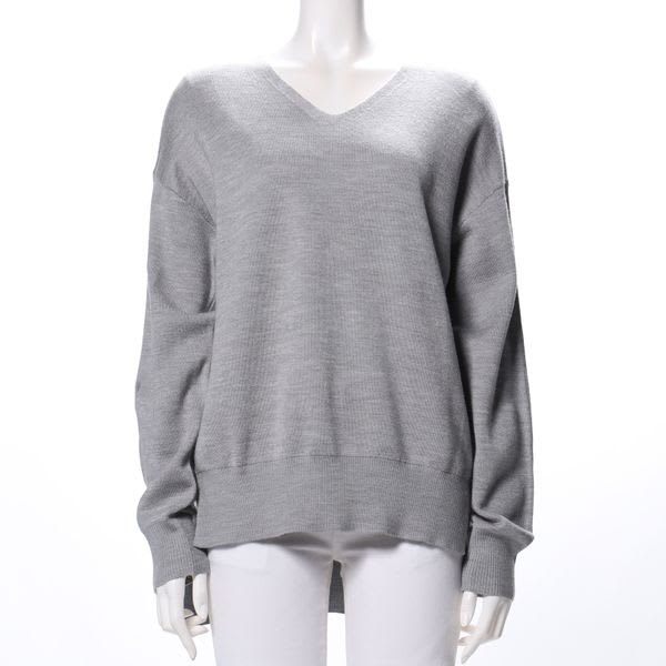 前後でカラーの濃淡が異なるドロップショルダーのVネックニット。ボトムスにはデニムパンツを合わせてカジュアルに、テーパードパンツで辛めにまとめてもステキです。