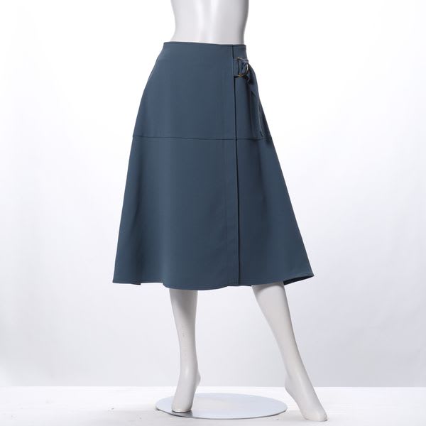 サイドのDカンベルトデザインがポイントのAラインスカートです。スタンドカラーブラウスとスウェードパンプスを合わせて上品なスタイルや、ゆったりとしたローゲージニットとフラットシューズを合わせてカジュアルなスタイルもいいですね。