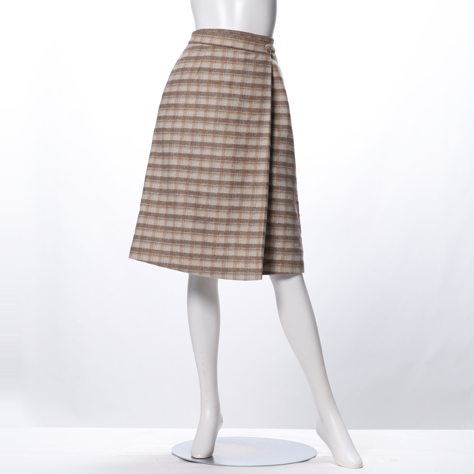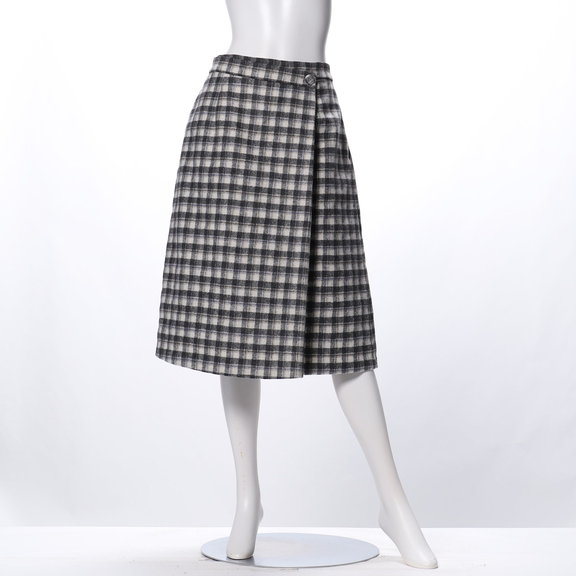 チェック柄のラップ風台形スカート。