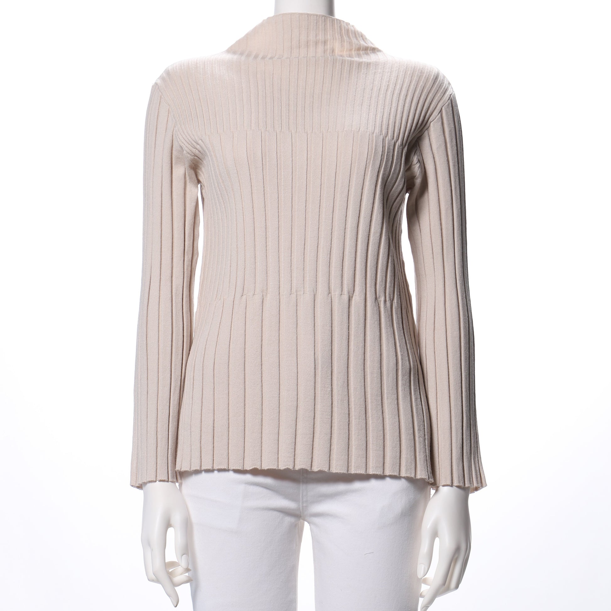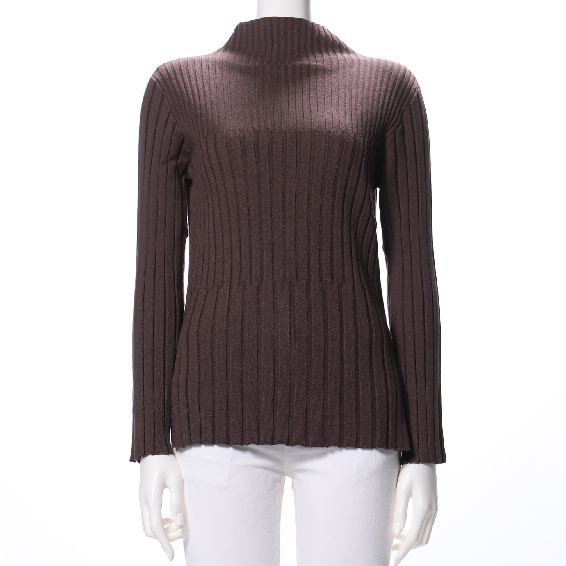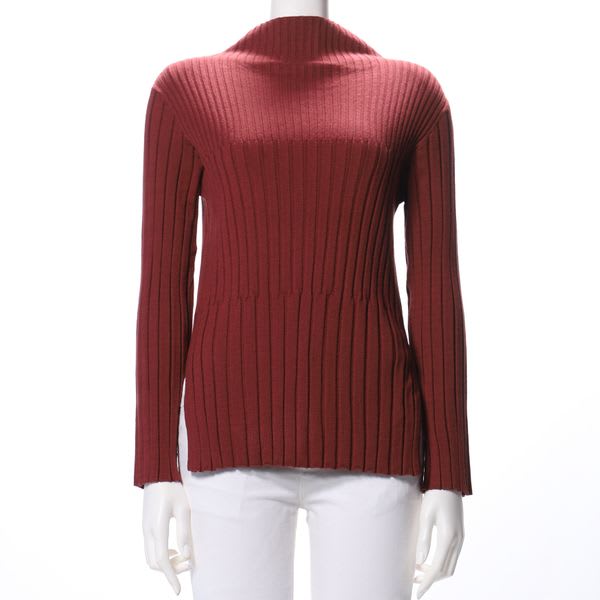 サイドスリットがポイントのハイネックリブニット。タイトスカートとパンプスを合わせて女性らしいスタイルに、デニムパンツとスニーカーを合わせてカジュアルスタイルもいいですね!